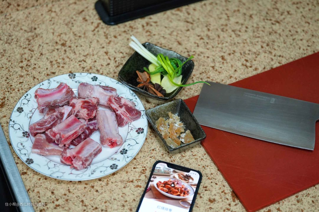 素菜的烹饪显然已经“拿捏”到位了,于是我又开始尝试着做了一下红烧排骨。第一次尝试的时候家里没有大葱,所以用小葱凑合替代了,其它食材全部都是照着 APP里的菜谱准备好的 ▲