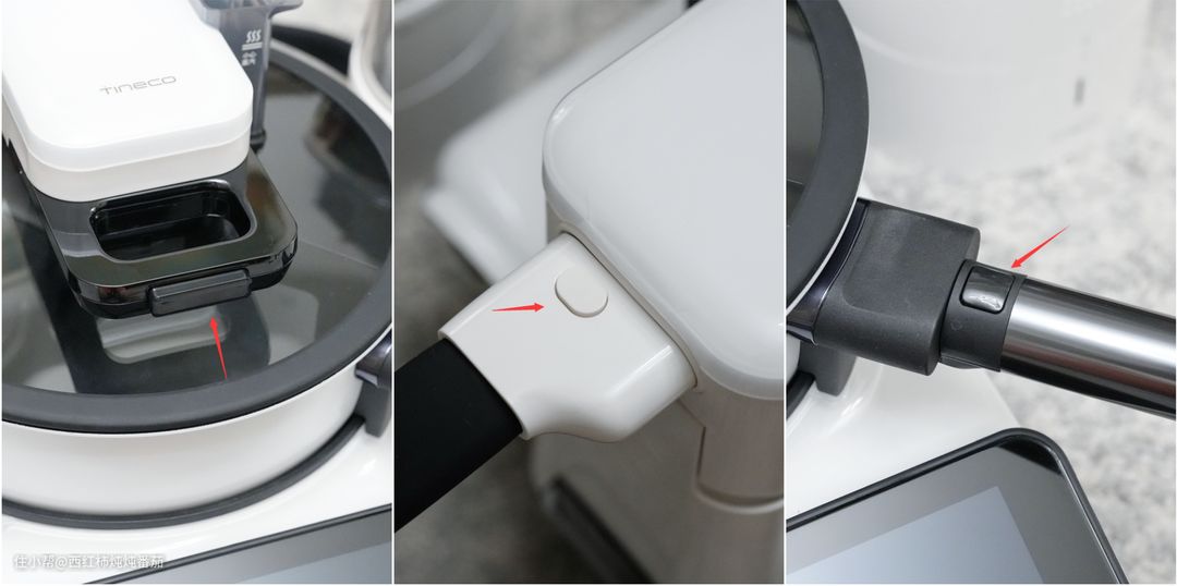 细节方面,无论是锅盖、料管还是手柄,需要拆卸的时候直接按下连接位置附近对应的按钮就可以轻松分离 ▲