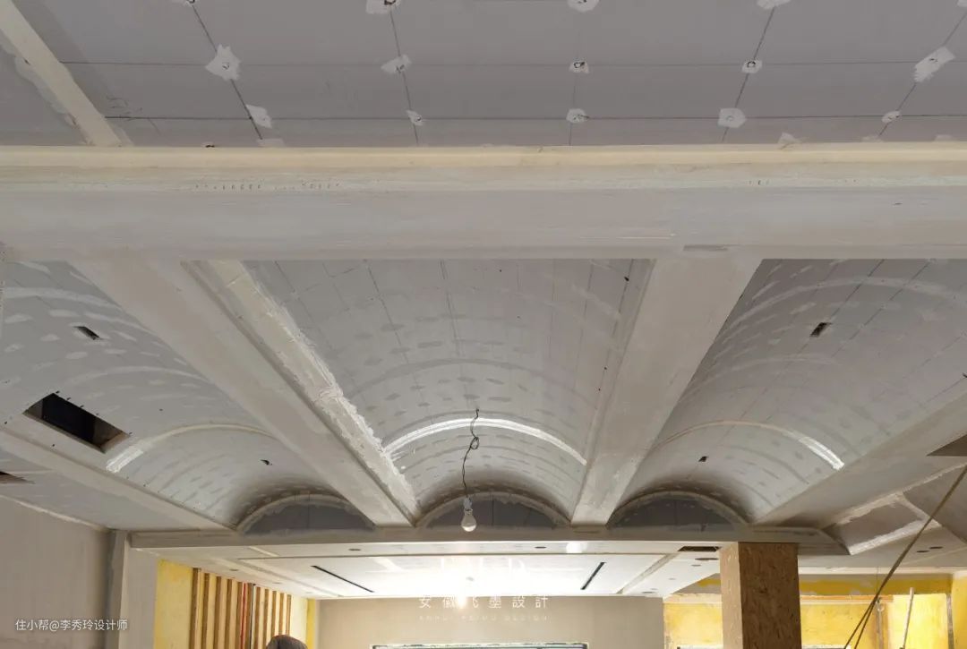没错,弧形吊顶与常规水平吊顶的施工方式一致,只不过内部的龙骨结构是按照弧度设计排列的: