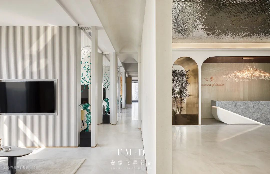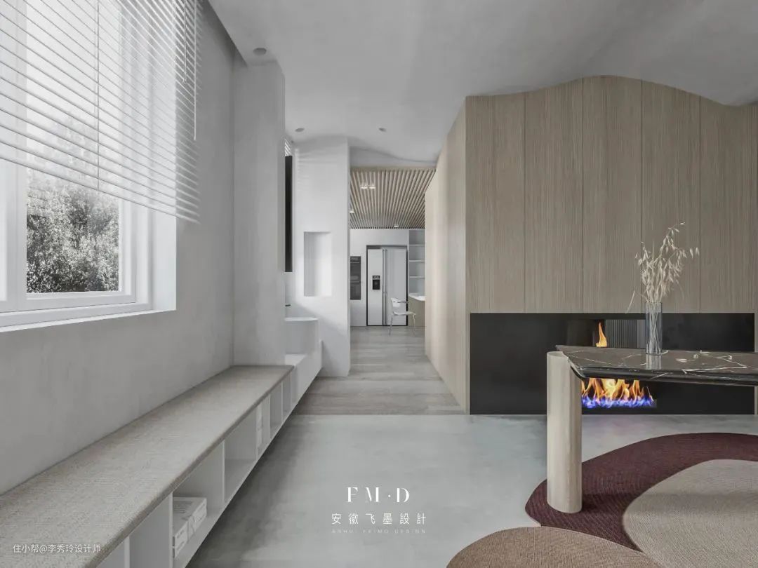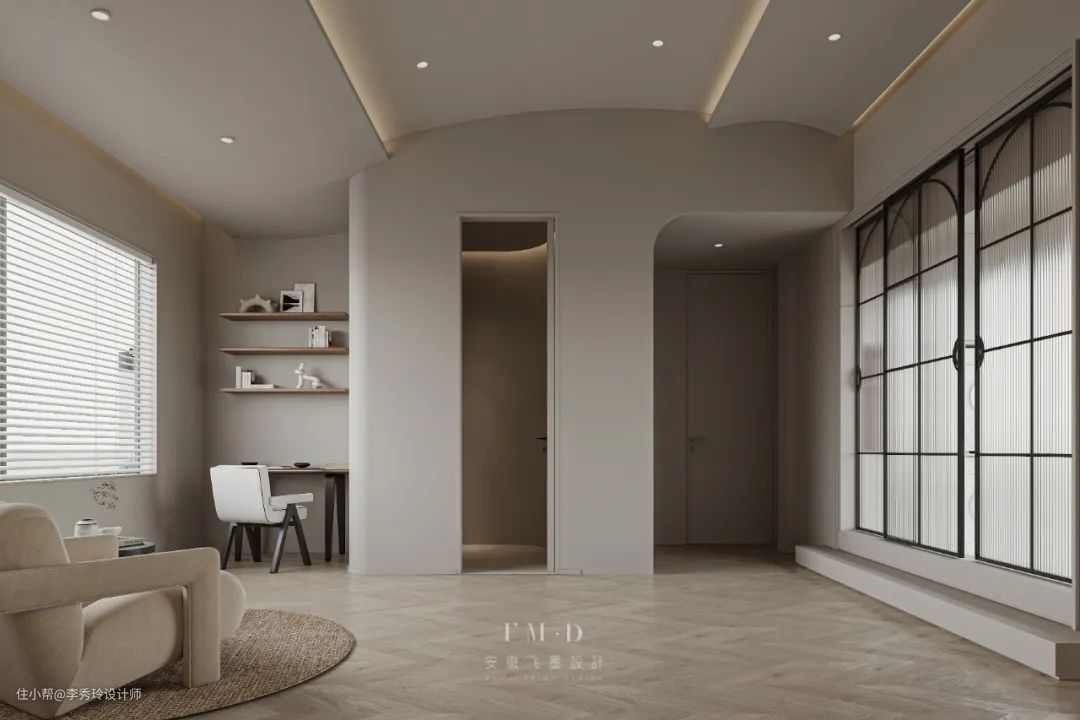 在墙面和顶面的结合处,利用弧度设计可以让墙与顶实现无缝过渡,有一种浑然天成之感: