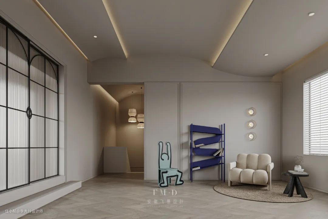吊顶一般有4个90°的直角,通过弧度化设计可以弱化直角的锐利感: