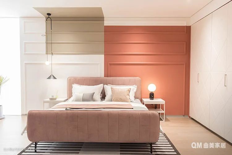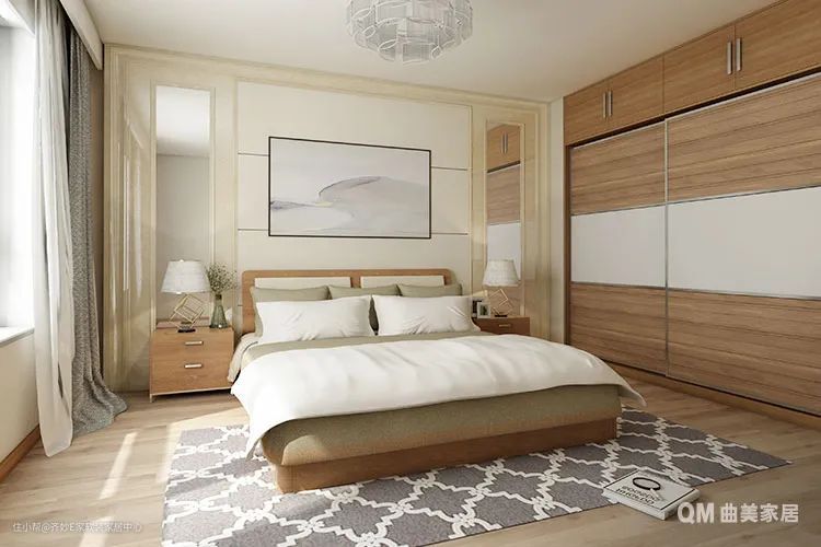 如果喜欢睡大床又担心卧室拥挤,可以考虑只摆放一个床头柜,或者选择床头带收纳的款式直接省略床头柜。