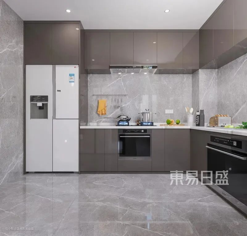简约风、极简风可以说是目前最流行的设计风格,除了色彩上的简约,对于各类家具布局,甚至小型厨电都需要合理规划好位置。厨房空间中最大的家电就是冰箱了,冰箱也完全可以做隐藏式处理,保证整体空间的干净利落。