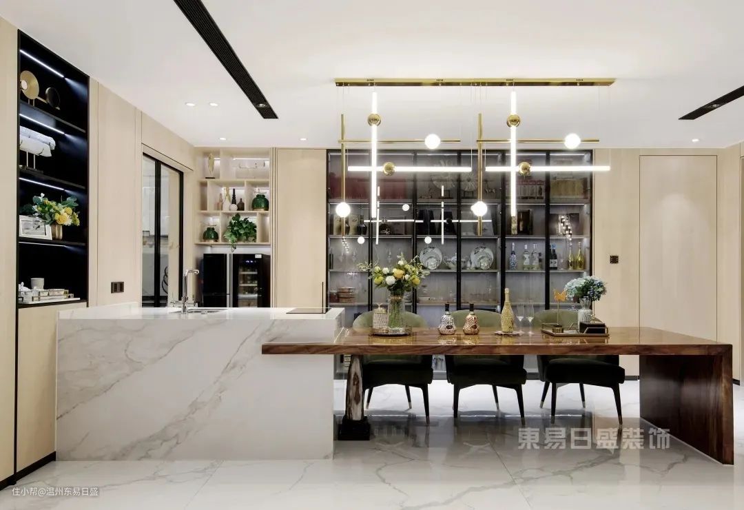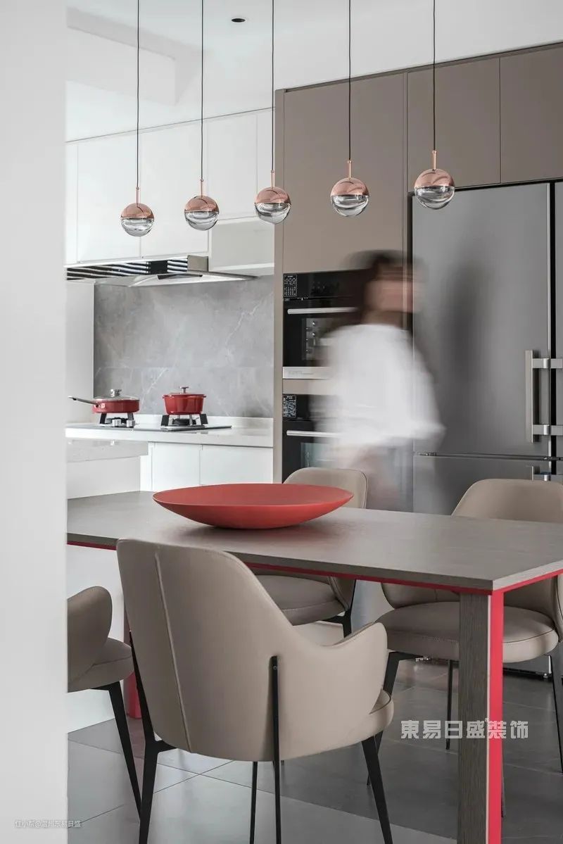平时我们冰箱都是独立购置,颜色可选择性比较少,放在装修好的空间中,总会多少有点突兀。如果我们能将冰箱做成嵌入式的处理,与厨房整体橱柜结合起来,能够保证整体风格协调一致。