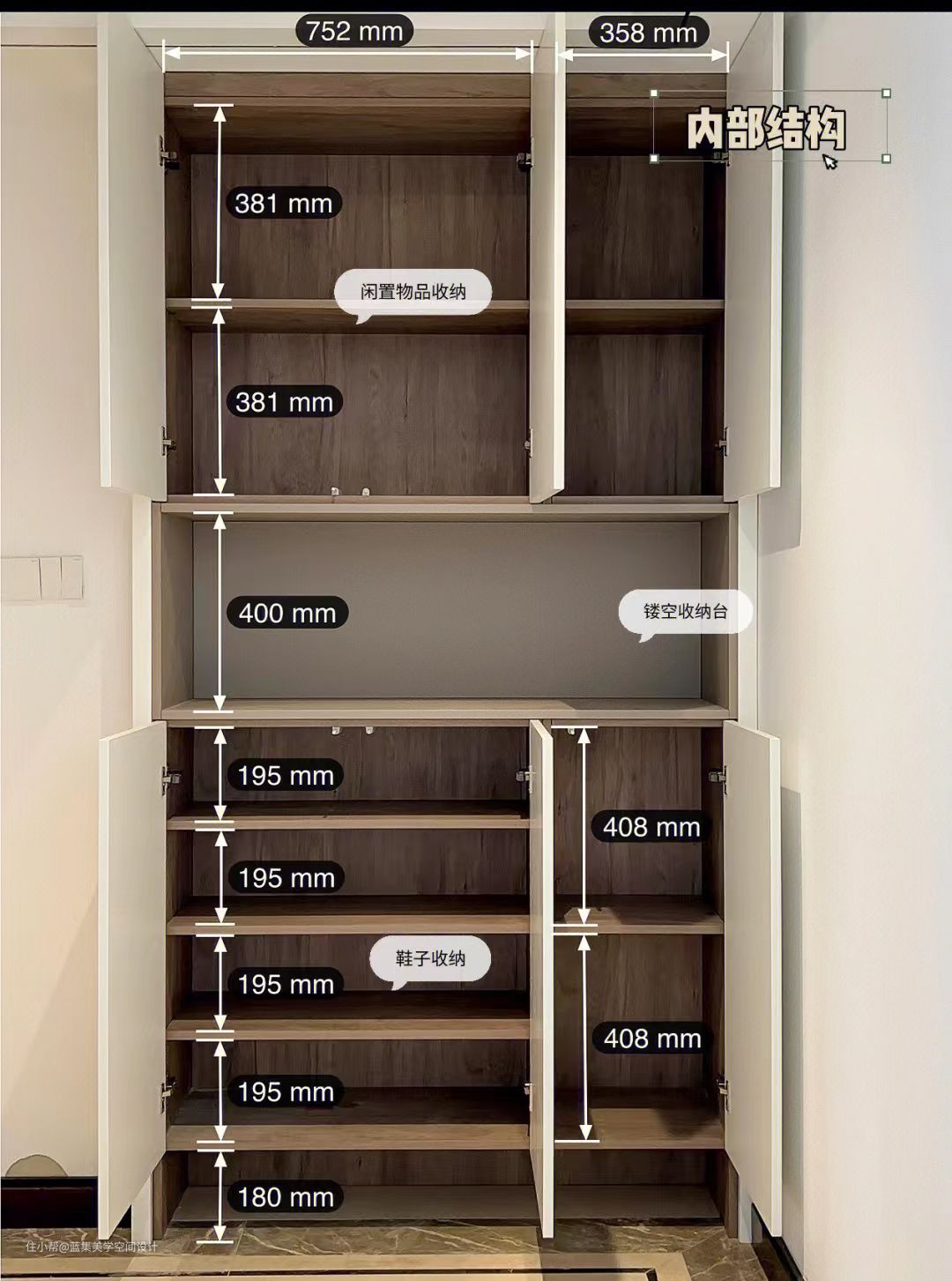 ✅鞋柜上下层板间距一般为16cm(建议设计活动层板,高度可自由调节)