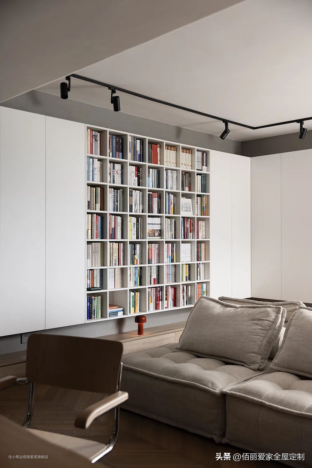 以现代简约风格为设计基调,采用奶油白搭配原木色系,过滤生活的杂质,不骄不躁,表达生活的淡泊宁静、清丽美好。在书香的包裹下,陶醉于真我世界。