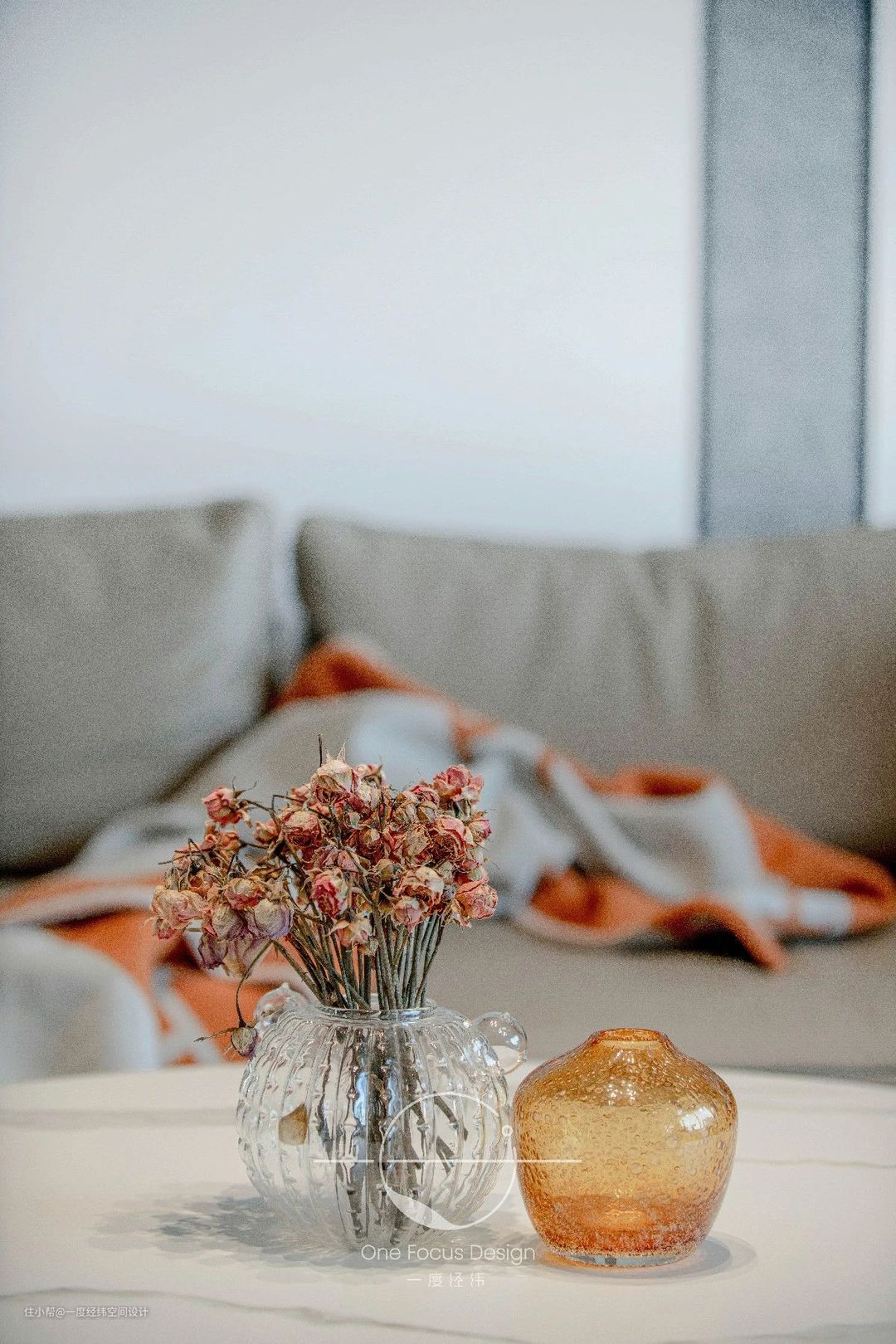 客厅饰品的无规则摆放,打破了原有的僵硬格局,让沙发不再是作为区域分界线而存在。各色鲜艳摆件的碰撞,给人以强烈的视觉刺激,调动了空间的活跃性,让整体冷调的客厅变得鲜活温馨起来,呈现出凌乱的美感。