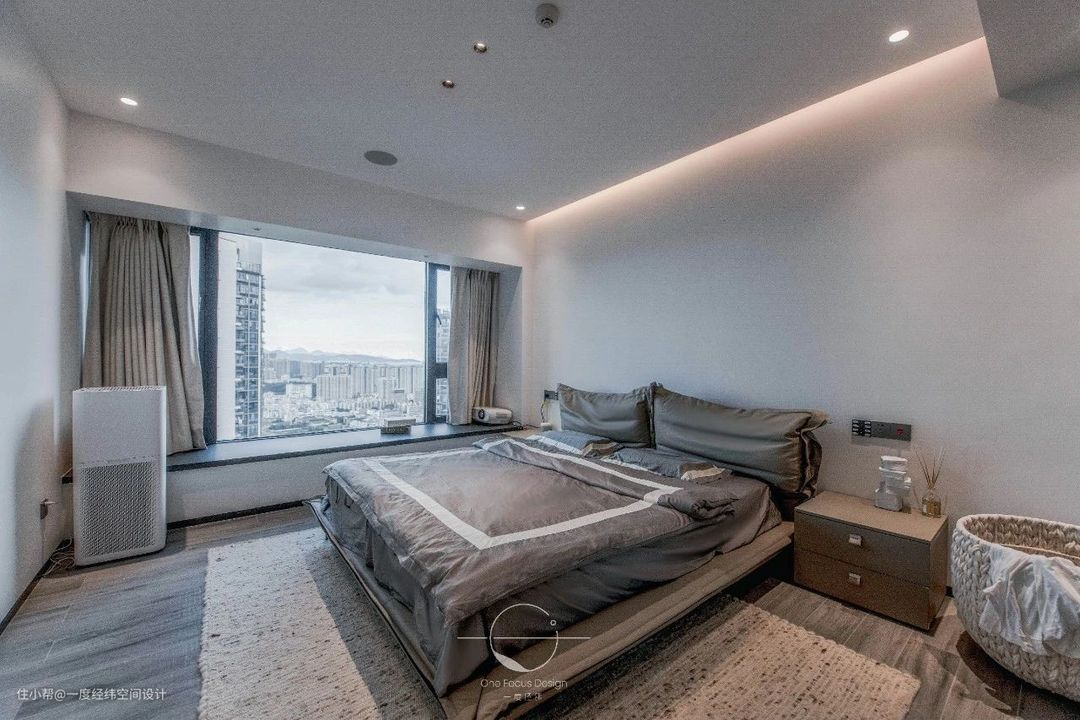 主卧延续了前厅风格,无主灯设计让整体空间变得整洁开阔,简单纯粹的线条勾勒空间量体,大面积的开窗设计将采光优势和室外景色引入室内,减轻了视觉的厚重感。整体风格稳重大气,含蓄内敛与时尚经典的融合,在古典与前卫之间达成美妙的平衡,重新定义了艺术和生活。