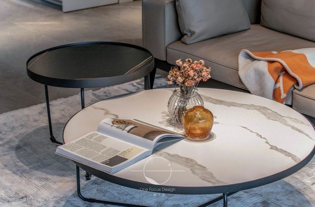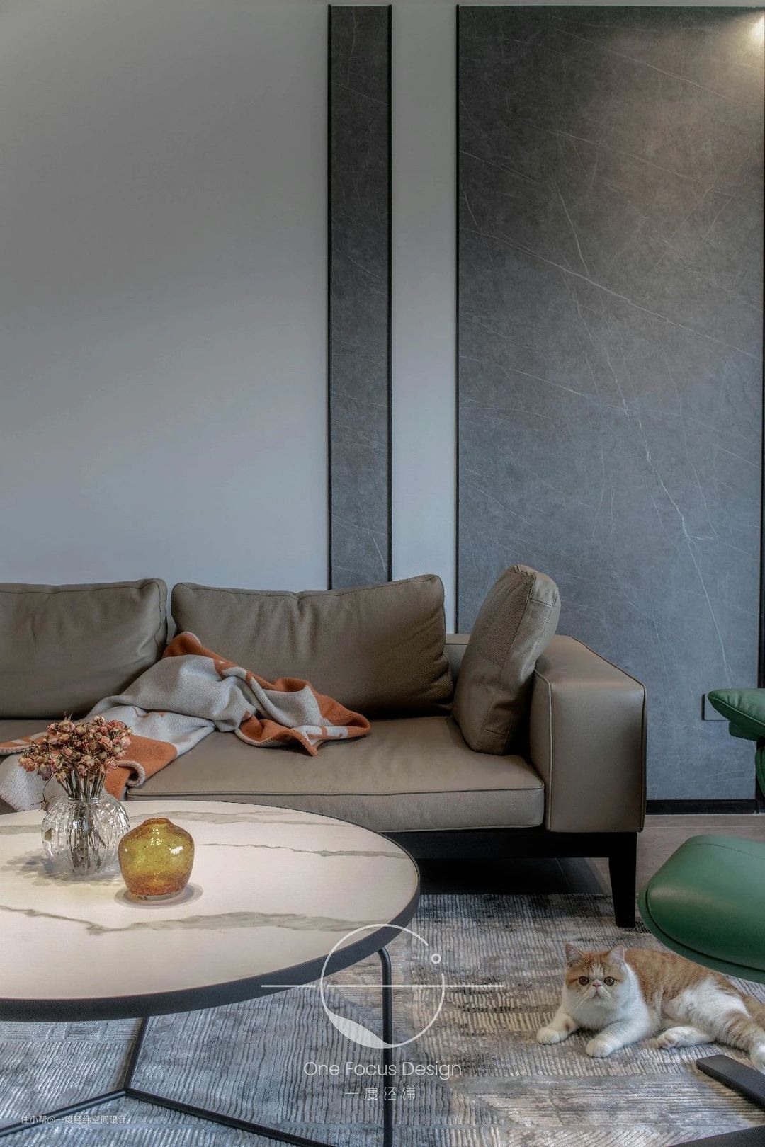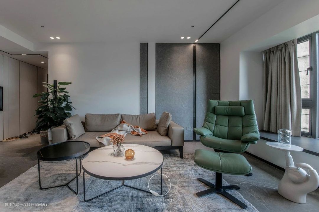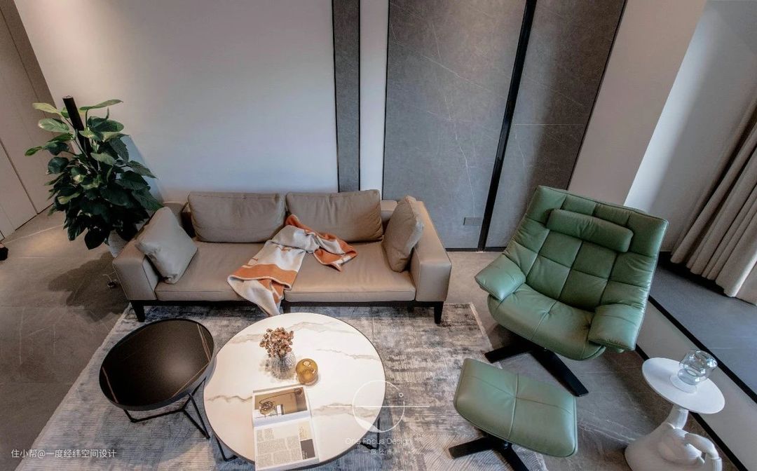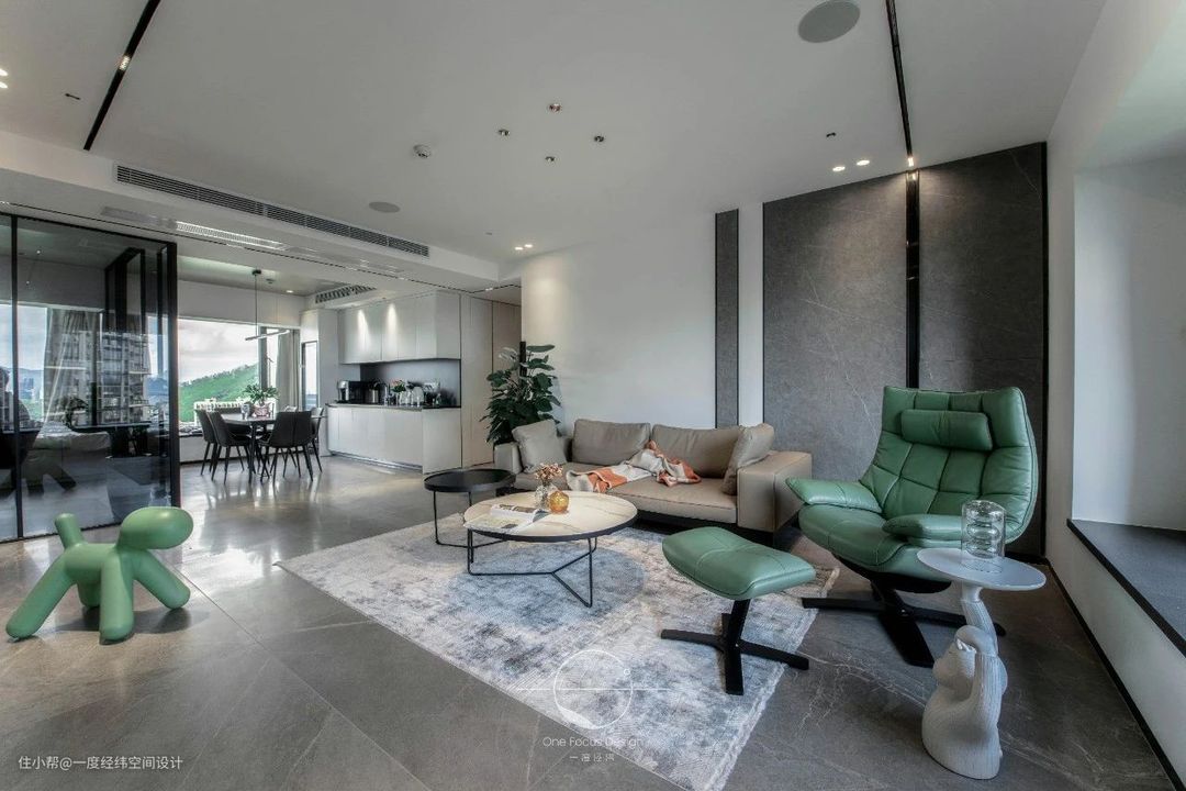 客厅沙发背景墙采用大理石搭配白色饰面板,和电视背景墙的大理石相呼应,简单干净的线条划分空间区域,不仅增加了客厅的美观性和实用性,还将大平层空间大、视野佳的优势发挥到极致。
