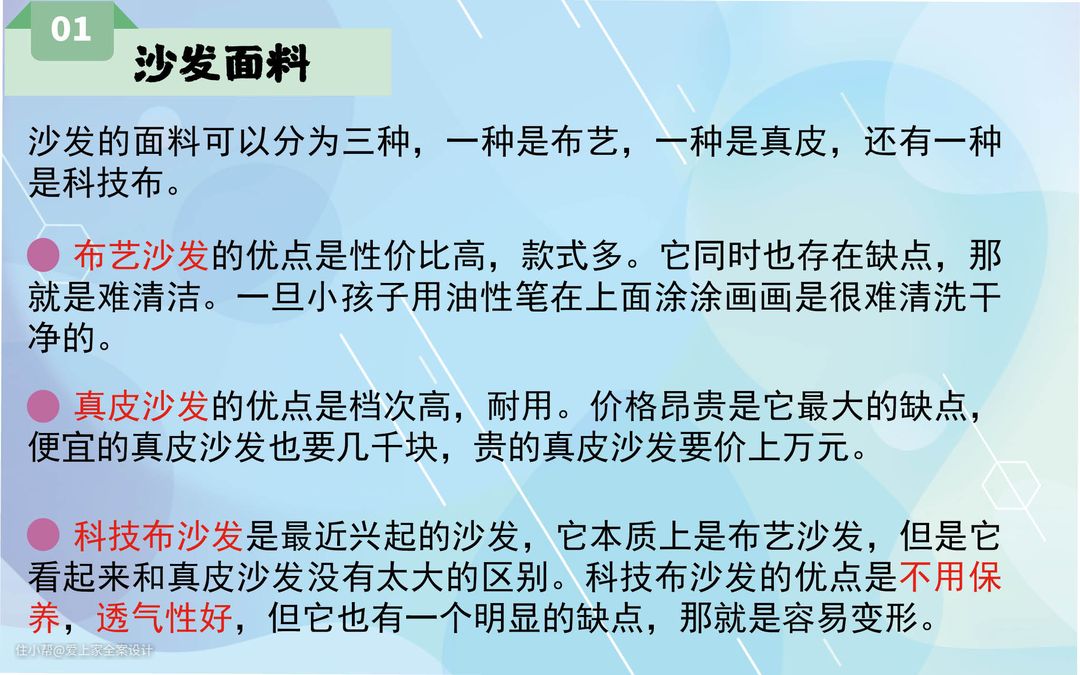 布艺沙发的优点是透气舒适、款式多样,同时它的缺点就是不耐脏,需要定期清洁,一般一段时间之后就需要拆下来清洗,而且清洗多次以后会产生褪色、缩水等问题。