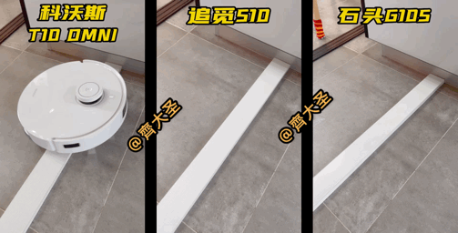 三款机型在都可通过1.8cm高度的障碍,不过追觅和科沃斯由于旋转拖布的加入,越障极限相比石头的2cm有所降低。