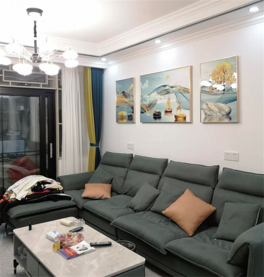 若客厅空间不大,不要再跟风买这种转角沙发,建议换成直排沙发,满足一家人使用需求,还可以搭配一个单人沙发,移动灵活,方便来客人时使用。