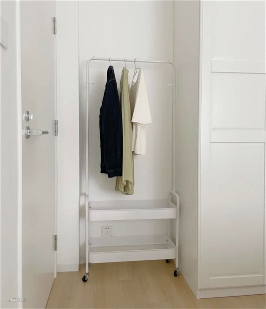 若房间不大,床尾凳就没必要买了,可以换成一个次净衣架,可挂衣服可放杂物,底部带滚轮,方便移动。平时摆到角落,不占地方,实用性更高。