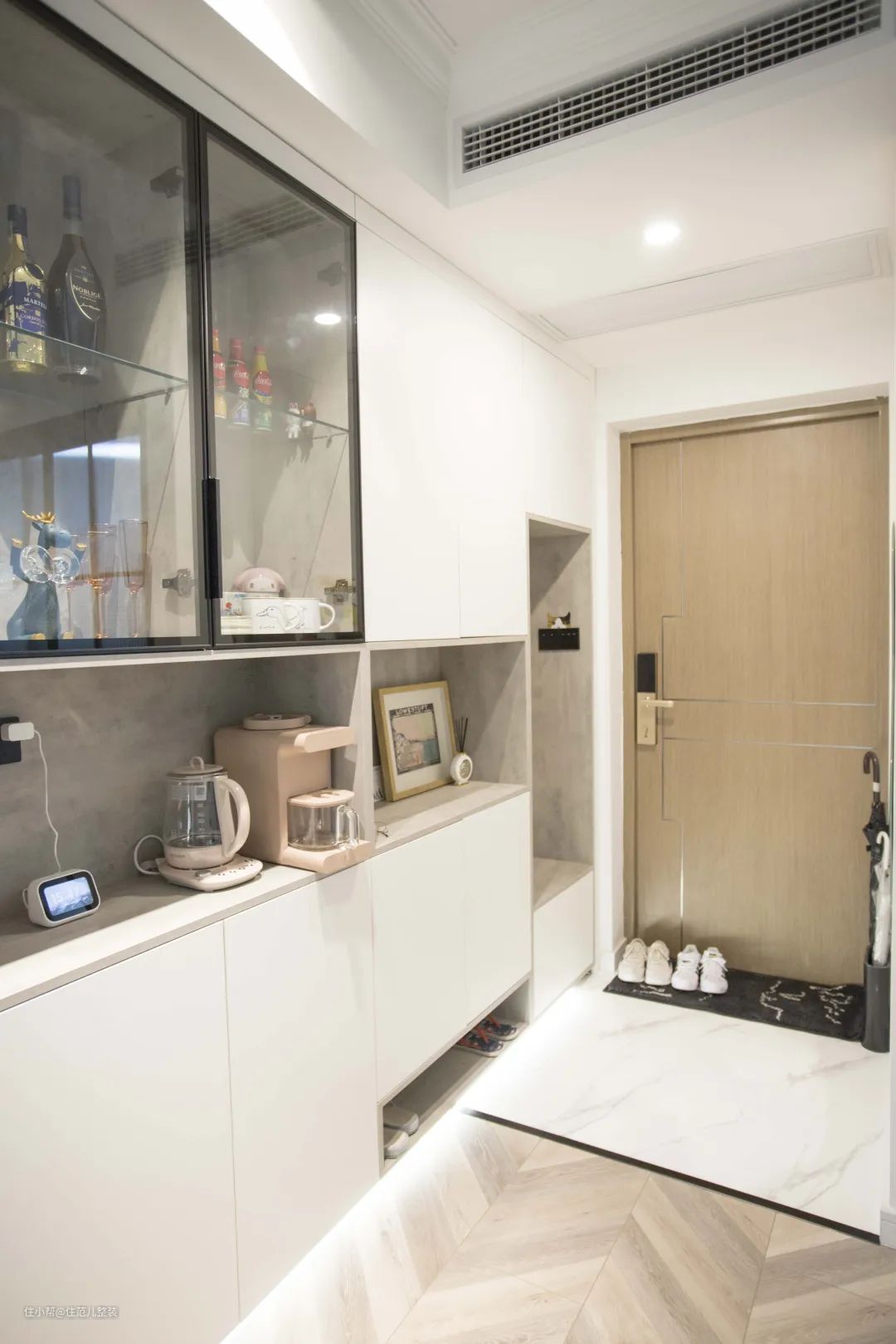 或者像住范儿客户w先生一样,设计下沉式玄关。