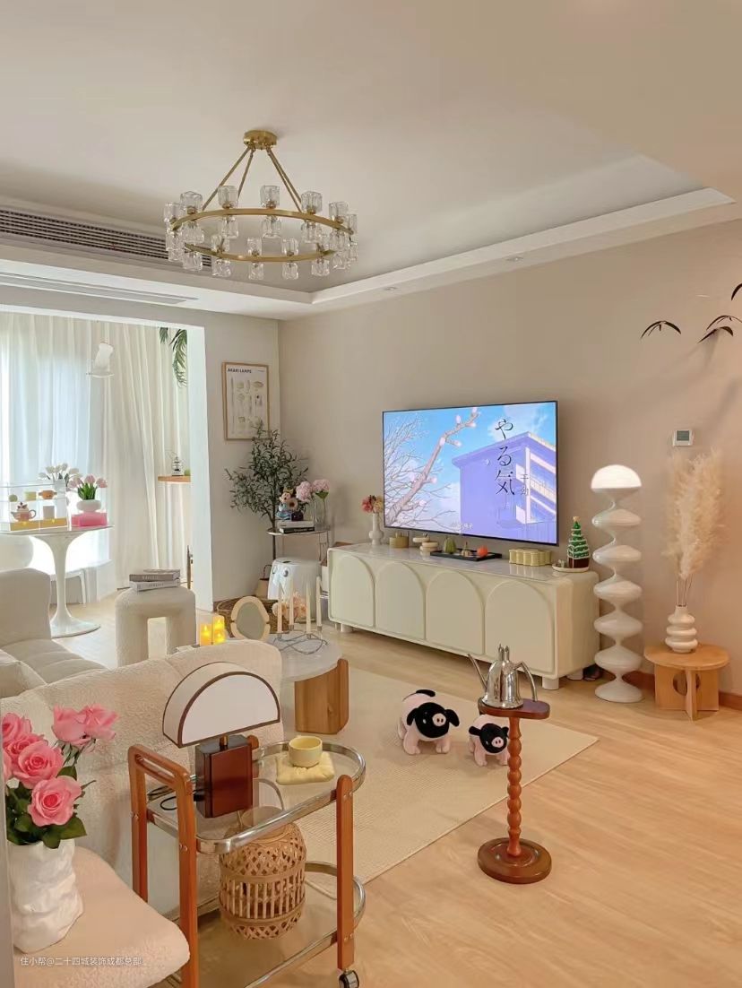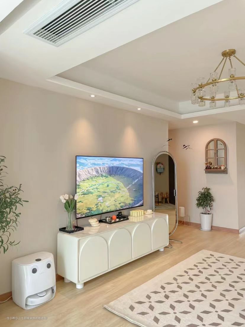 将精装房经典的电视 背景墙拆除后,用米色的乳胶漆做了基本的装饰,所有的改造都非常的简单,但完工效果却是出乎意料的好看。
