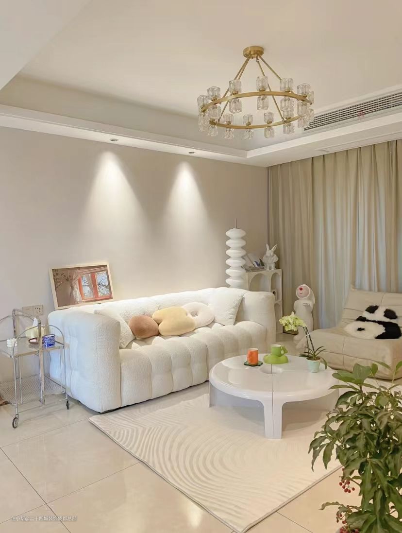 偶尔将中间圆形的茶几搬走,将客厅打造成无茶几的空间,客厅显大不止一倍。如果不是有很多的东西需要摆放,做无茶几的设计是很棒的。