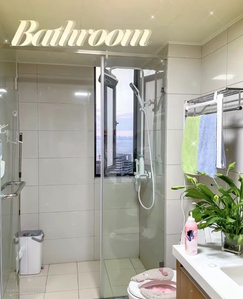 卫生间怎么说呢?中规中矩,说不上好看,也说不上太丑,原本的地砖、墙砖、吊顶等都没有改动,特意搭配了一套白色的花洒,看起来很高级。