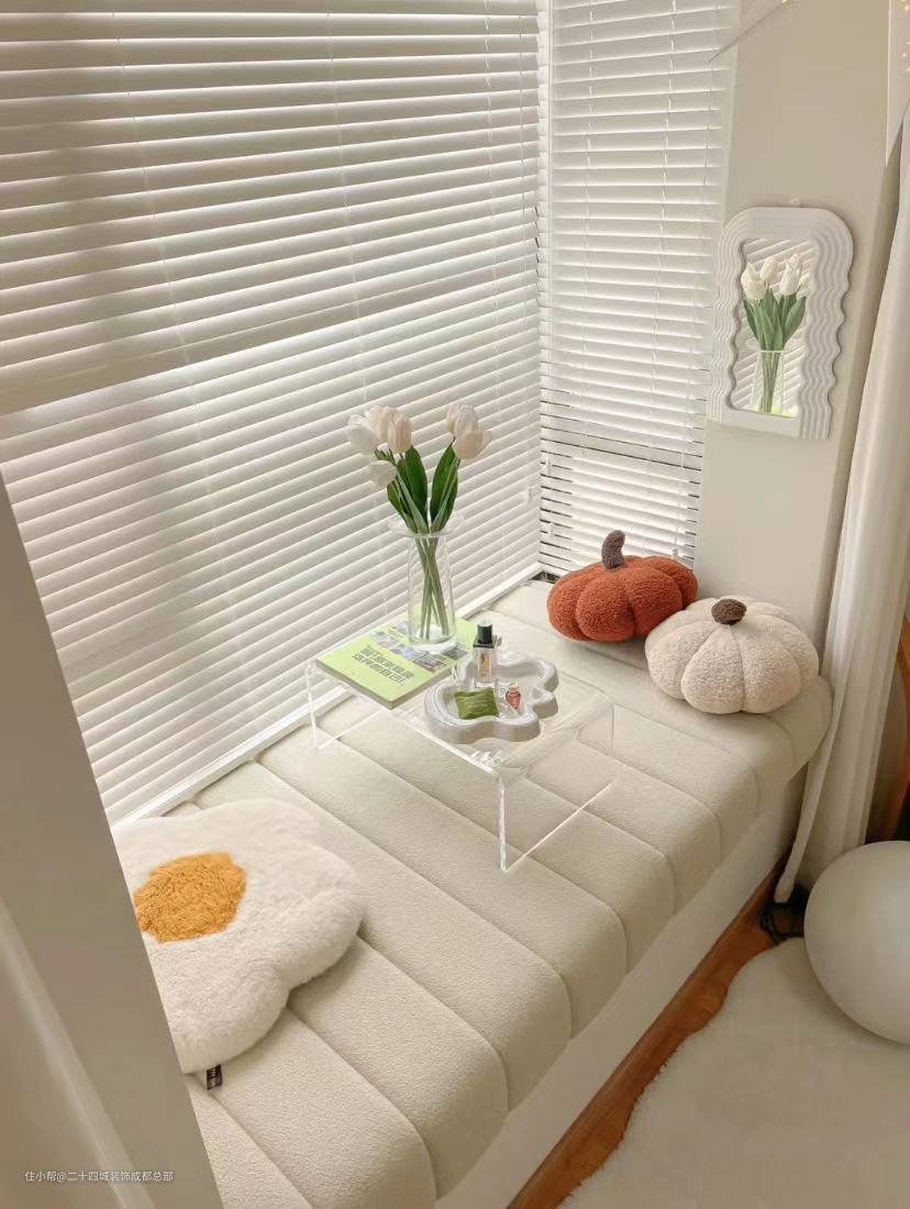 原来用的绒毛飘窗垫是个灰尘毛发收集器,果断换掉!定做了一个新的,实木框架不易变形不打滑,和飘窗尺寸贴合。高密度海绵坐感比绒毛垫好了不止一星半点。主要是冬天不冷夏天不热。