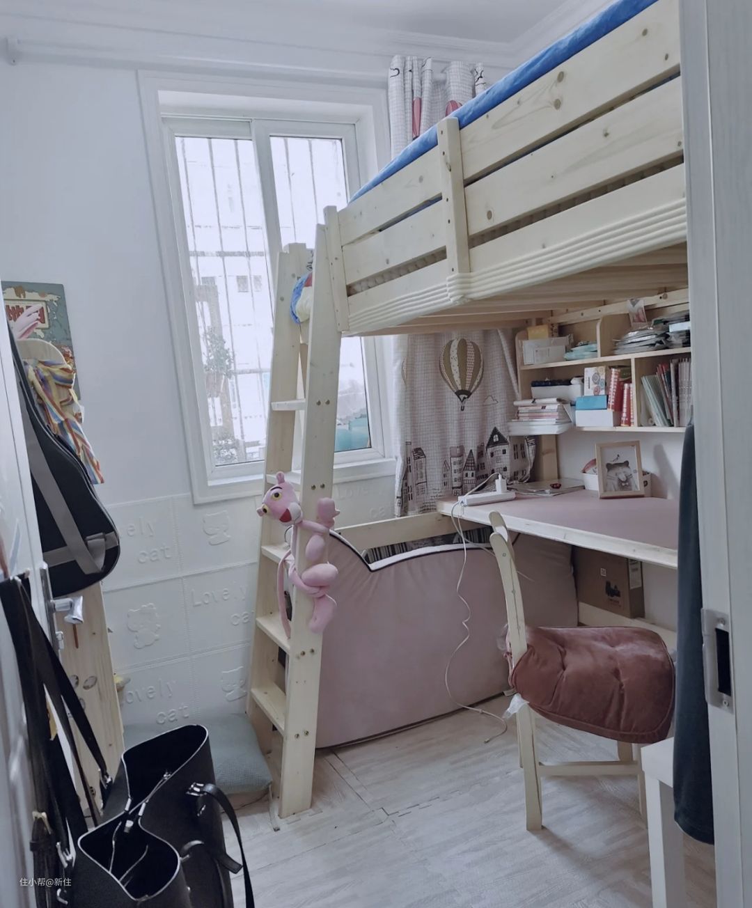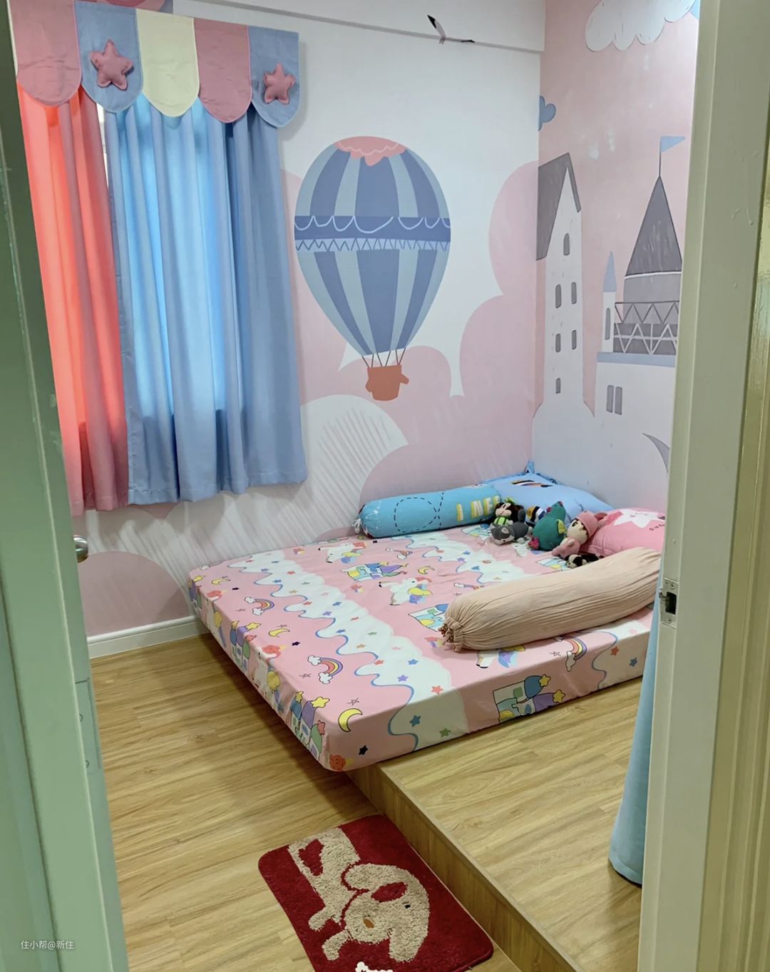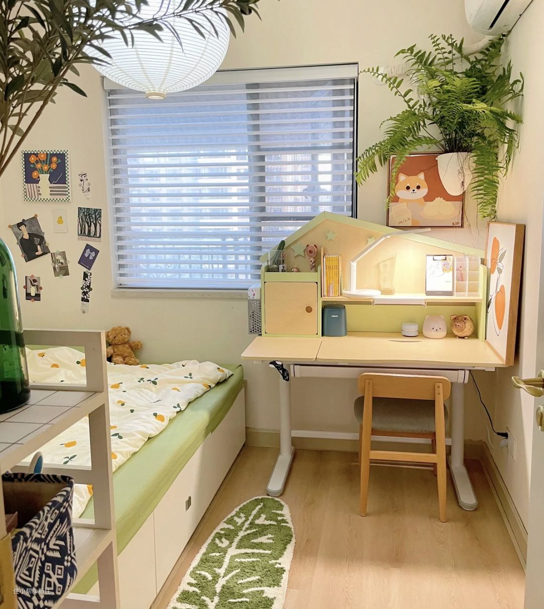 这样一来,五岁以内,这里就完全是玩具、绘本区,满足孩子这个阶段的玩耍需求,等到六岁上小学了,再将其改造为学习+睡觉私密空间区域,比那种从一开始就做成长大要用的样子,要实用太多。