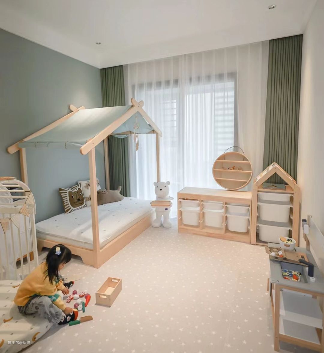 其实,最好的就是,儿童房铺上木地板,搭配几个小坐毯,孩子在上面玩耍不至于冰,且每天可拖,更干净卫生。