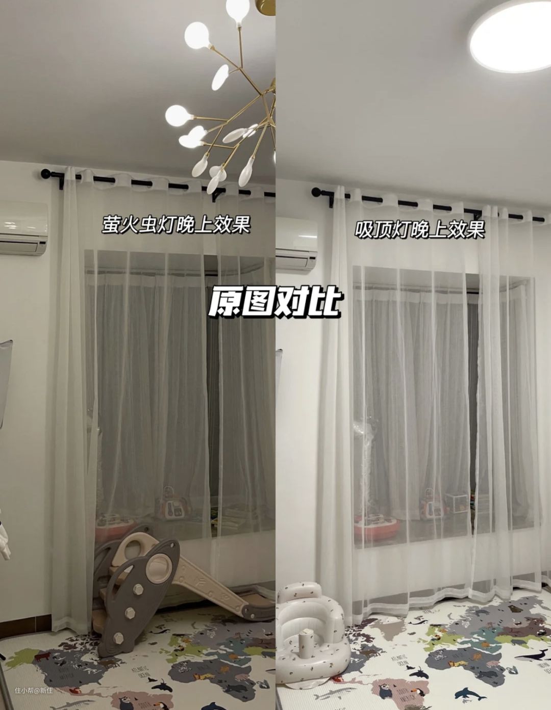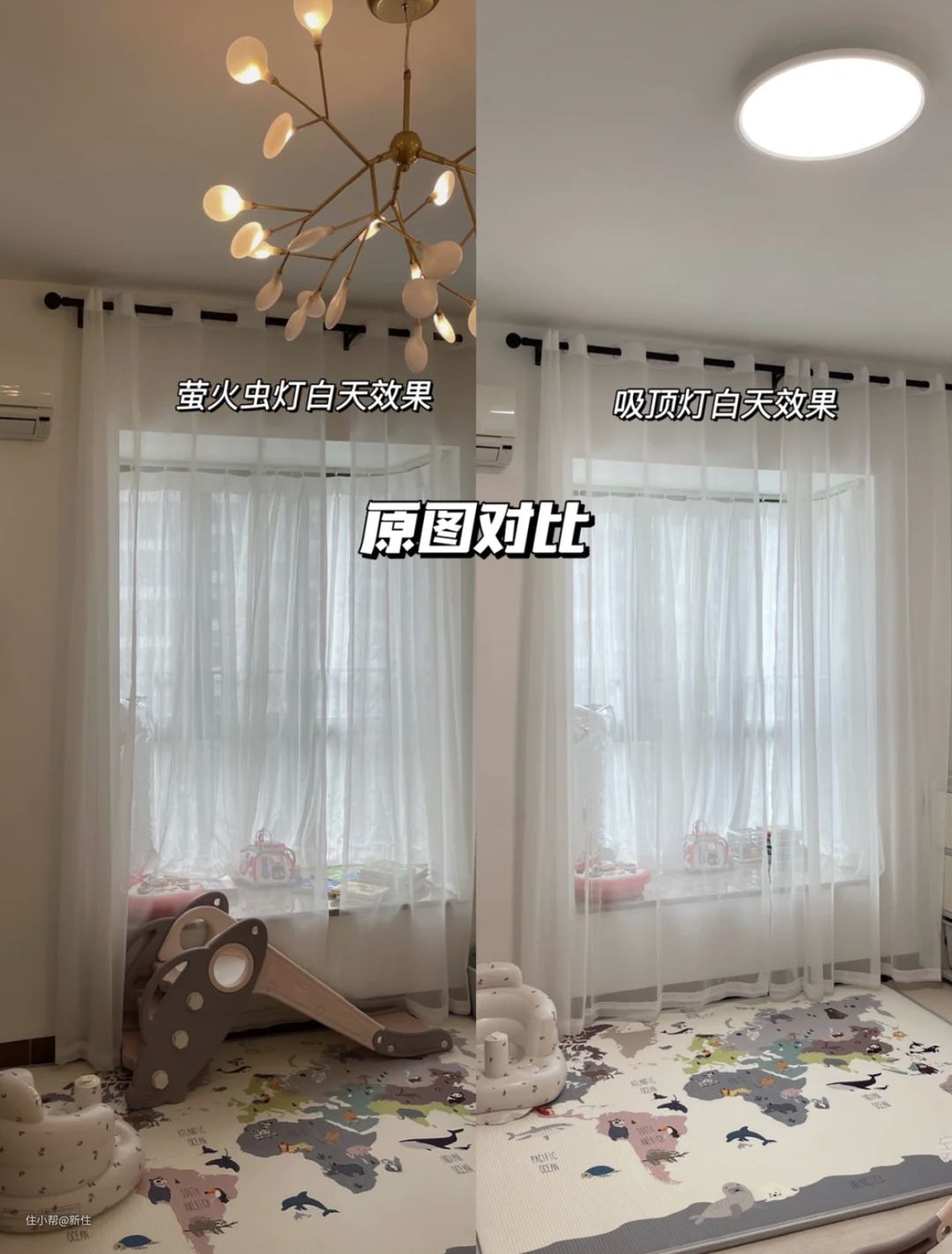 孩子经常在卧室看绘本、画画、玩玩具,待的时间比大人要长的多,大人意识到后,立马给换成吸顶灯,这才感觉出差距,说:吸顶灯的亮度让人眼睛极度舒适。