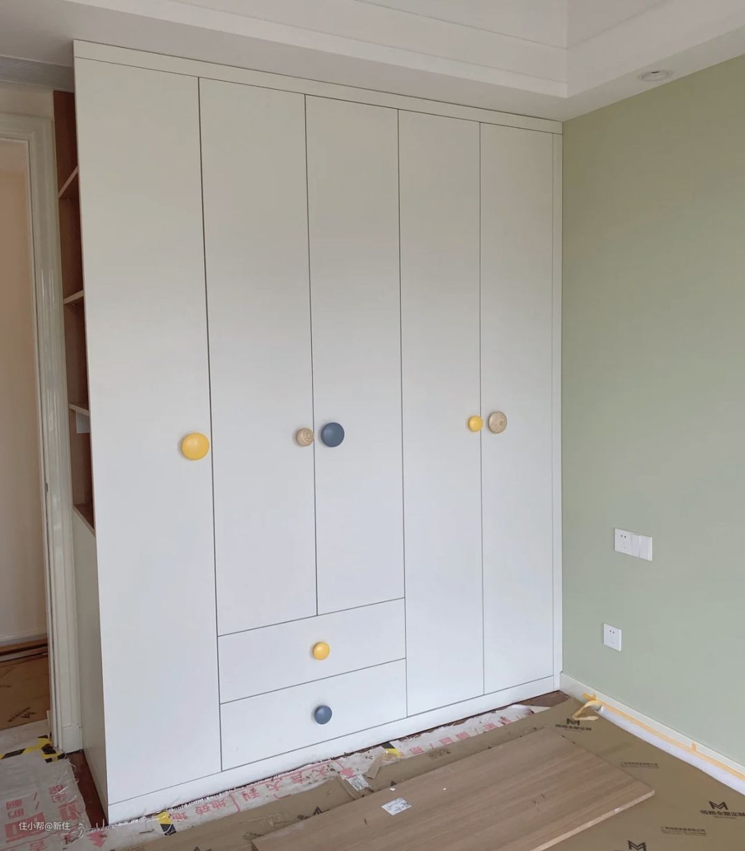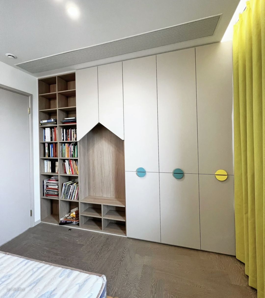 没有考虑书柜,但随着孩子长大才发现,书本比衣物还要多,最后就是书籍乱扔,儿童房永远看着乱糟糟的。