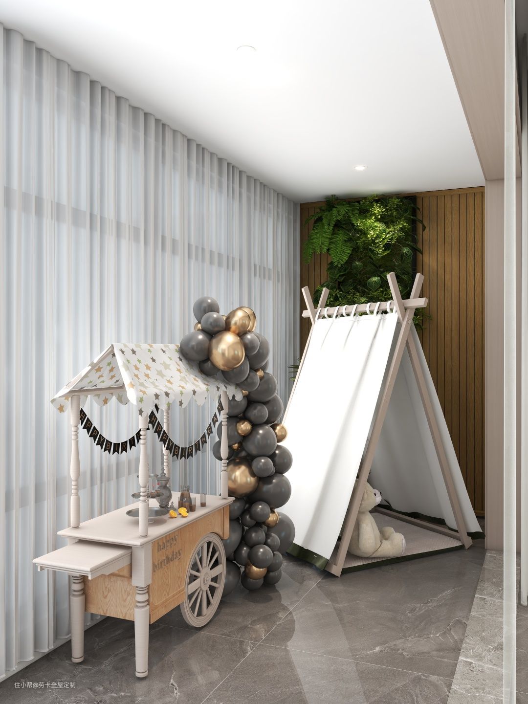 设计师的灵活设计还展现在阳台,这里被设计成家庭式露营活动区,在现在露营热潮中,享受自然野营魅力。