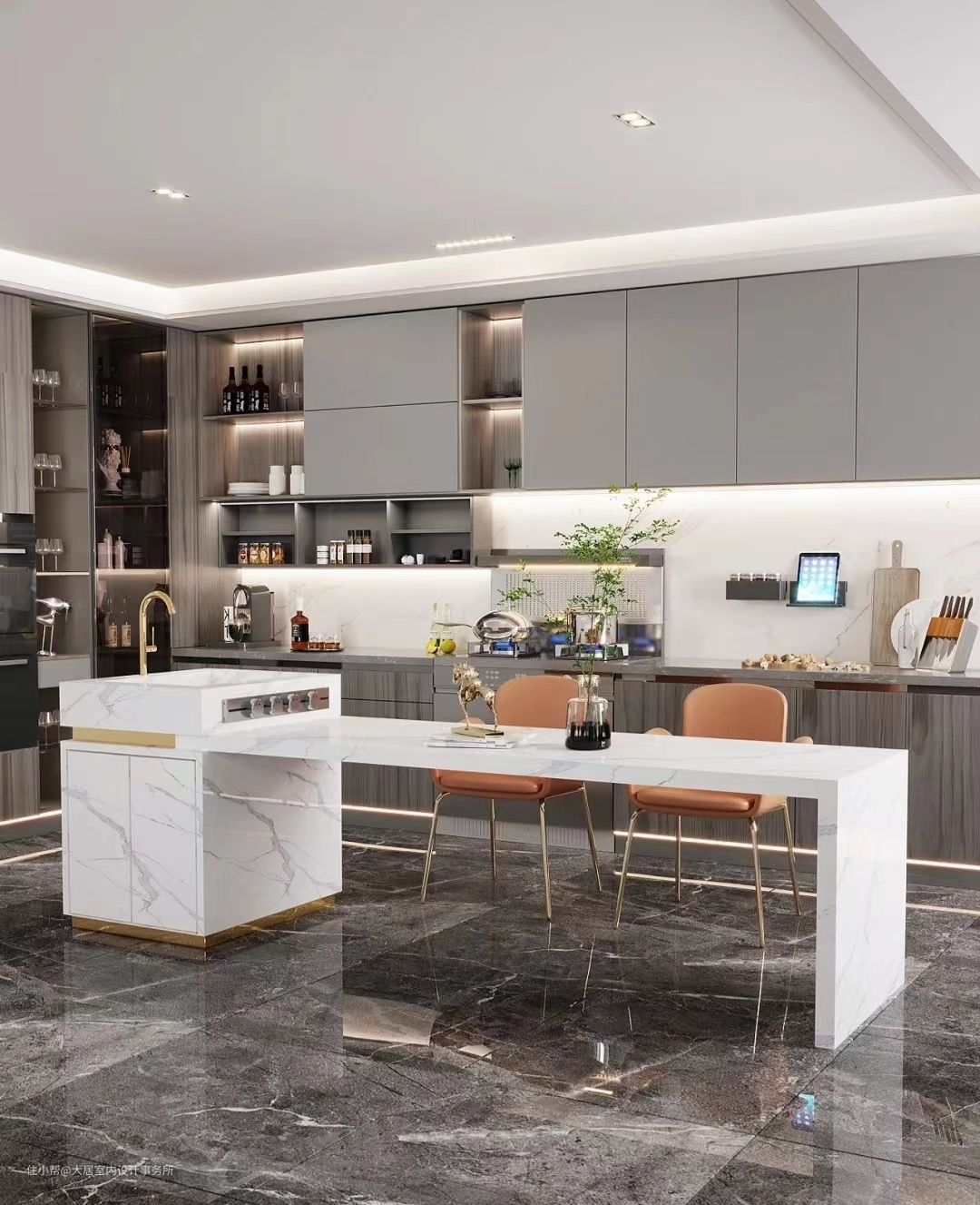 厨房装修总的来说,可以分为两种,一种是开放式厨房,一种是封闭式厨房,开放式厨房指的是厨房没安装门的设计,而封闭式厨房式多了一个门。