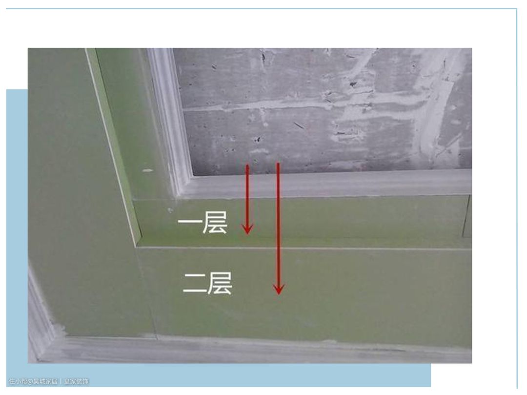 二 二级吊顶。就是两个层次的吊顶。吊顶的尺寸大一些是针对于层次多一点的,施工的过程也会相对应复杂一些。吊顶的距离也是为200毫米高度,不过还是得根据实际的楼层高度去定的,不过层高很高的话,每一级的厚度也是可以根据实际情况去适当的增加一下的。层高如果是比较矮的,是可以把每级的高度减少3厘米的。但要注意不可以减太多,否则就会导致它无法安装灯管。