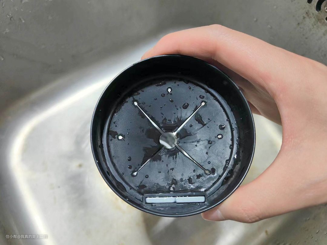 配合工具将食物残渣送入垃圾处理器中,打开水保持一定速度的流动,放入防溅罩后垃圾处理器就可以开始工作啦。实际体验一般的食物残渣处理的效率还是很高的,等待几秒就可以轻松完成研磨操作,效率还蛮不错的。