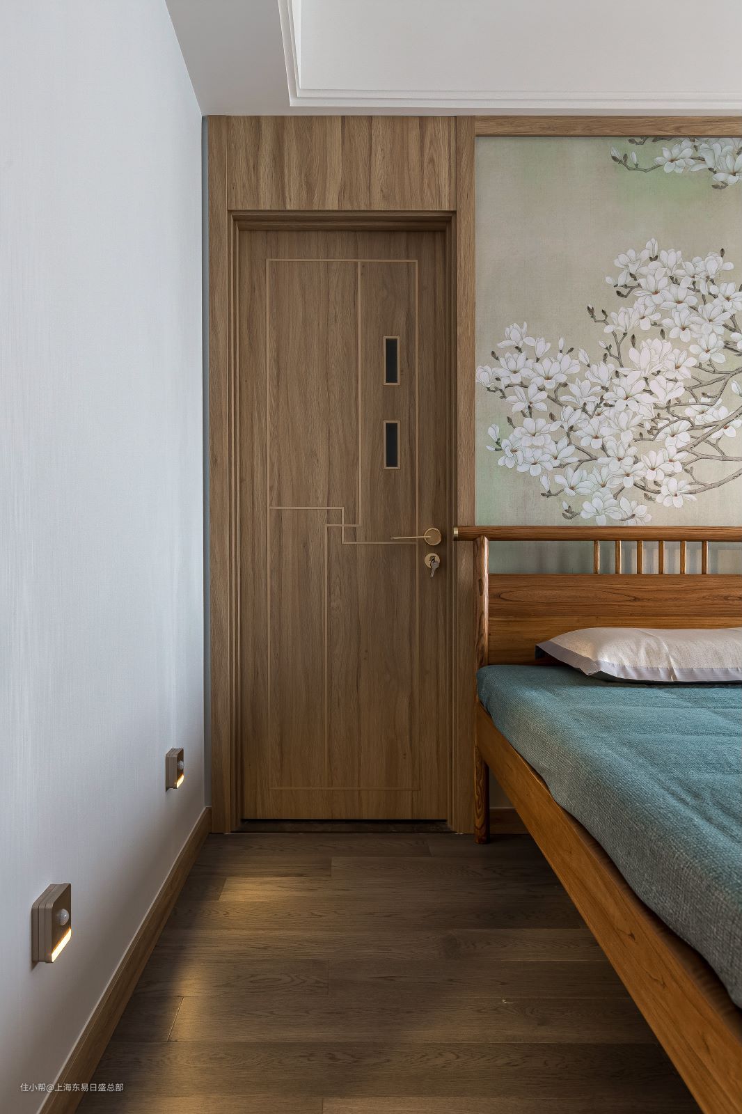 为方便老人起夜,侧墙也添加了感应灯,下床行走灯光即可亮起,避免磕碰。