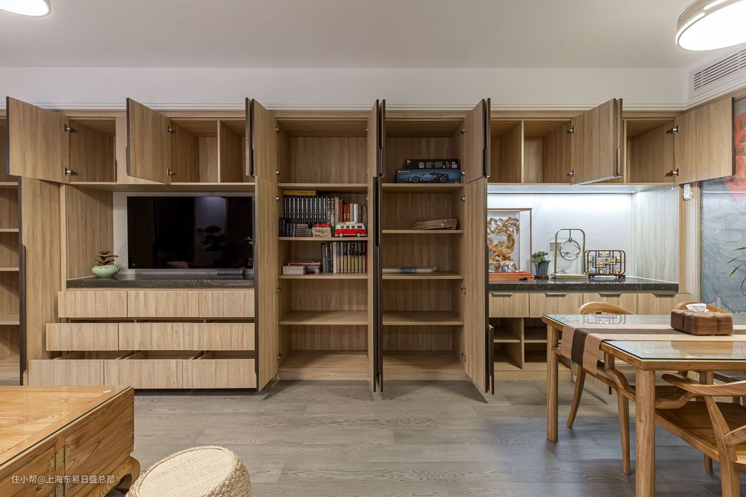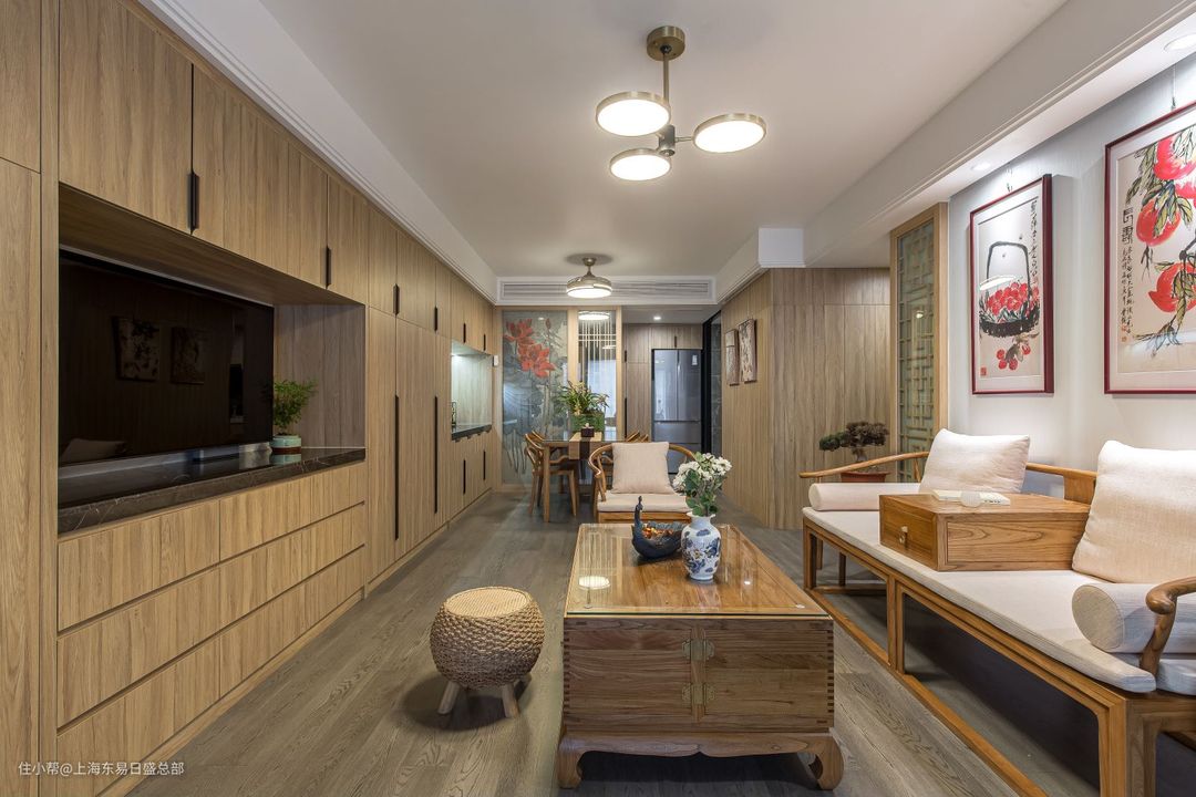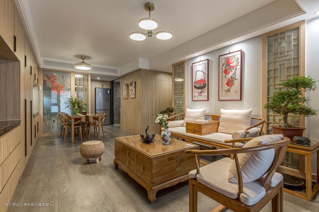 我们整个家都选用了新中式风格,选用偏浅色调的实木家具,让整个空间不会过分雅致。