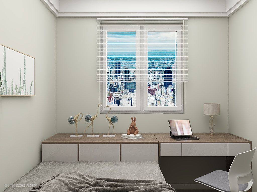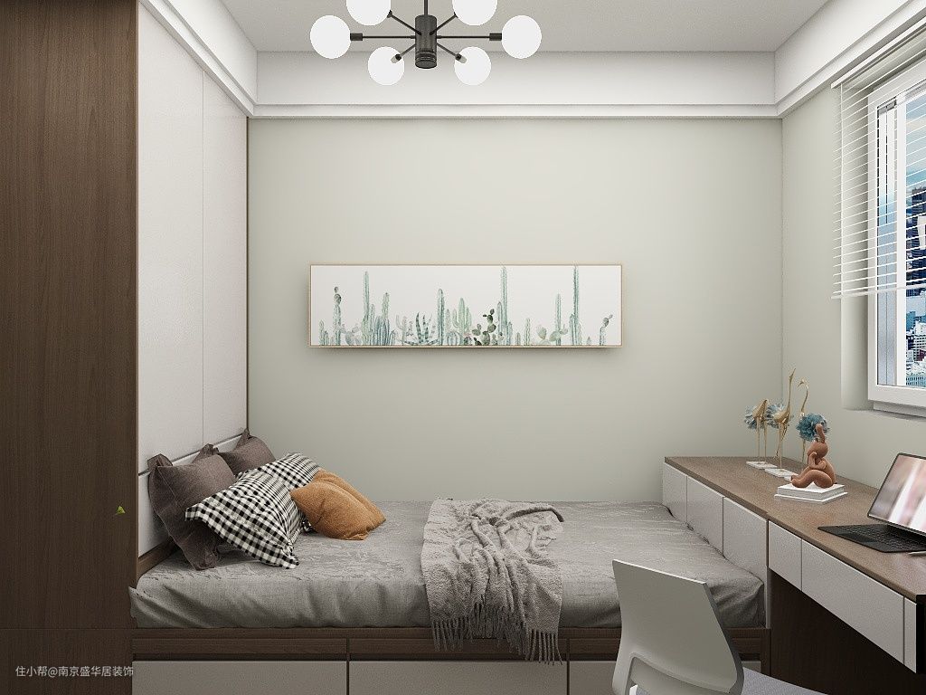 小卧室高级小书房,谁能不爱安全感满满!床体底部是榻榻米设计,合理利用小房间打造更多合理收纳空间。
