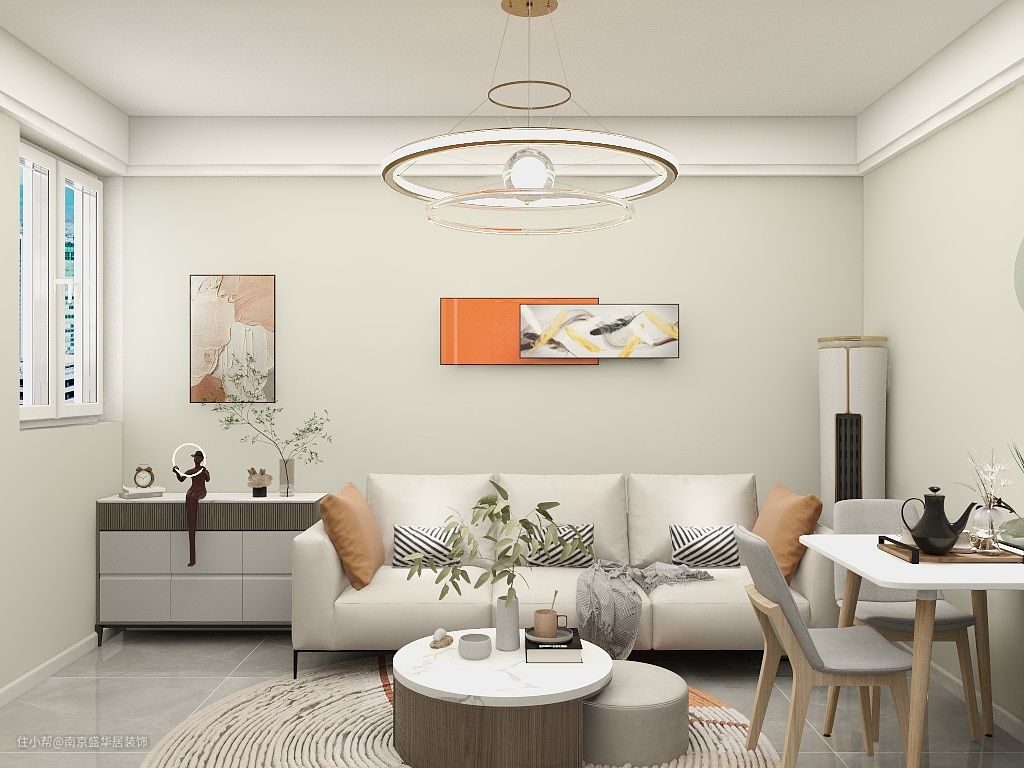 客厅:低饱和度的配色搭配高级感灯光效果营造了满满轻奢感,塑造沉稳不沉闷得室内氛围。