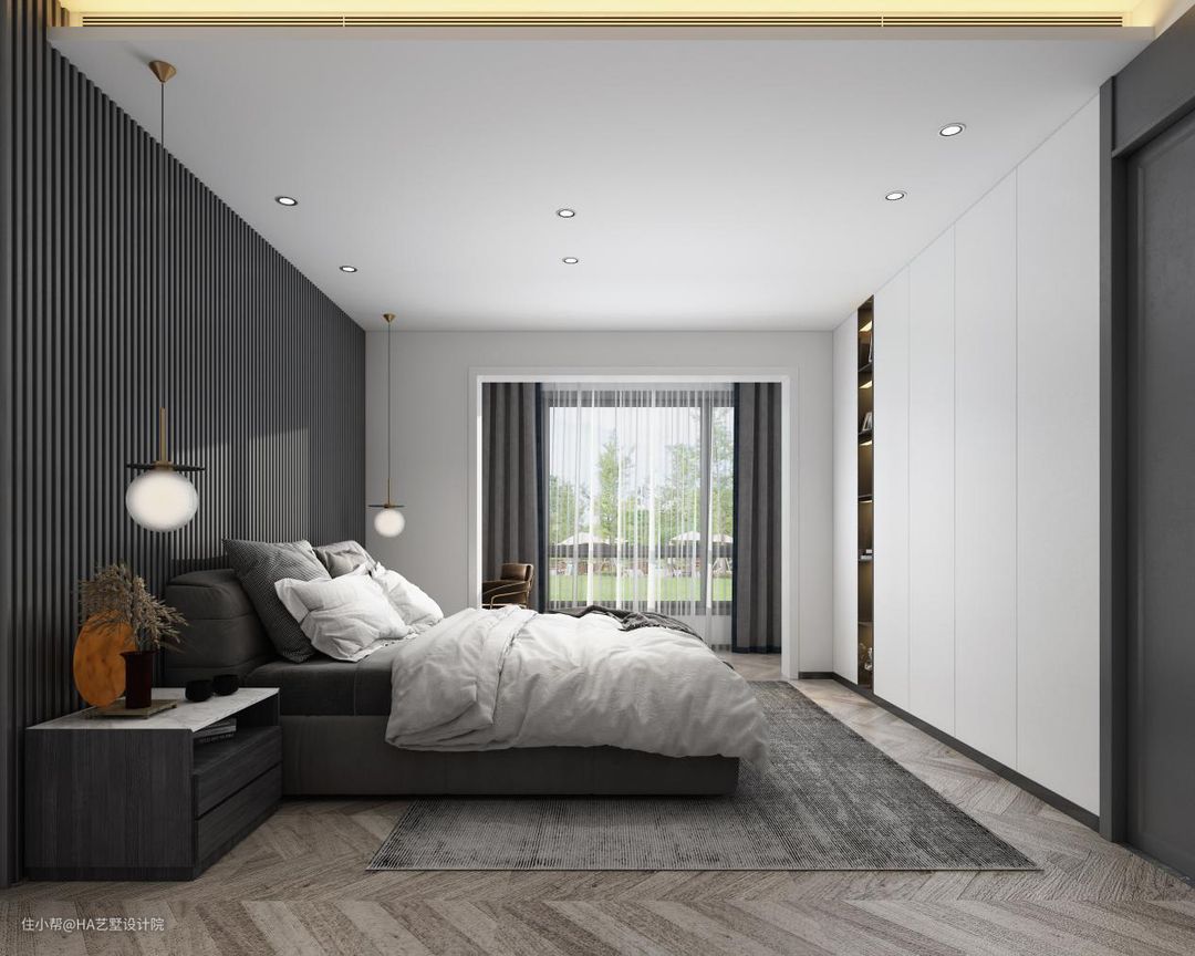 2在卧室中要尽可能的多设计柜子等储物空间,以后会将杂物全都收进柜子里,保证空间处于极简、干净的状态。