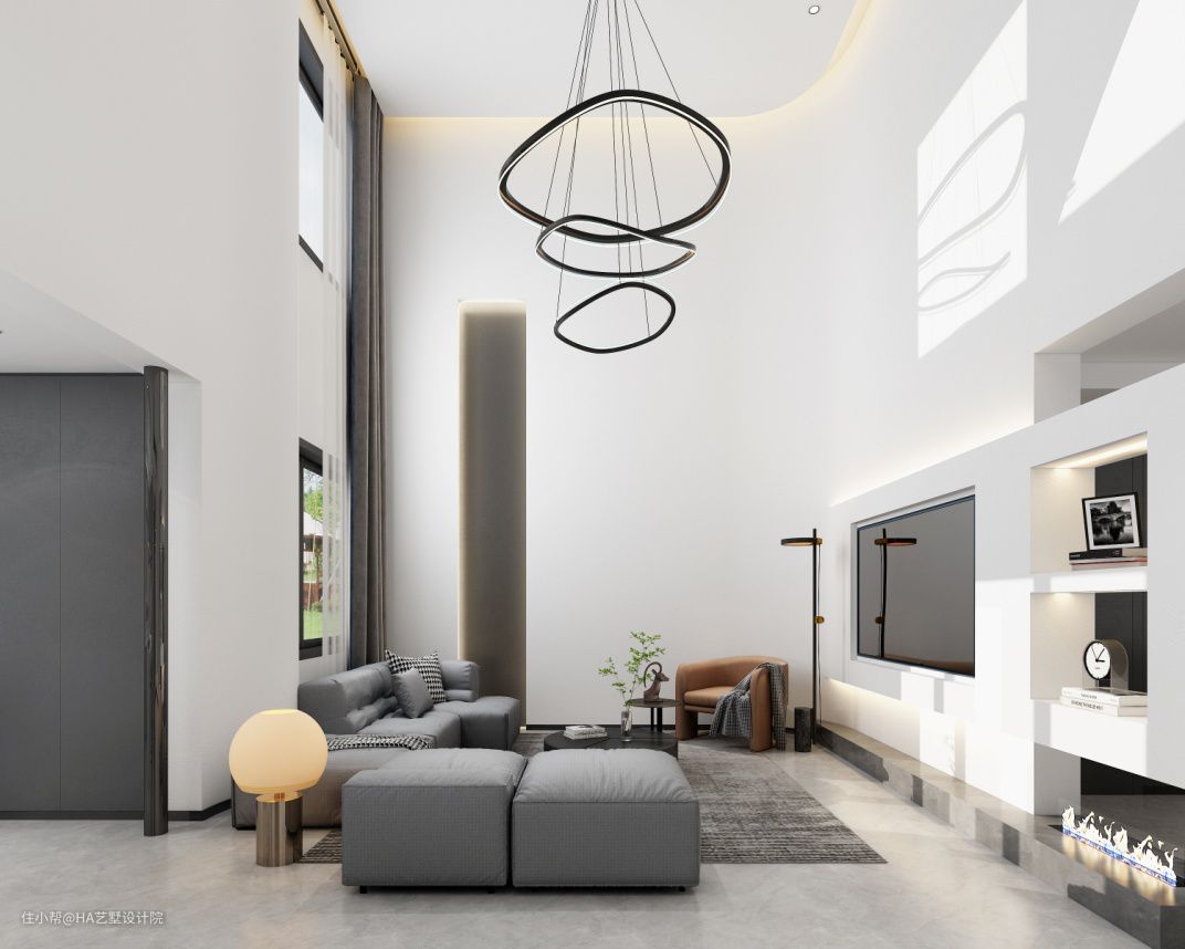 224㎡极简风格复式豪宅,让人体验大道至简的美。