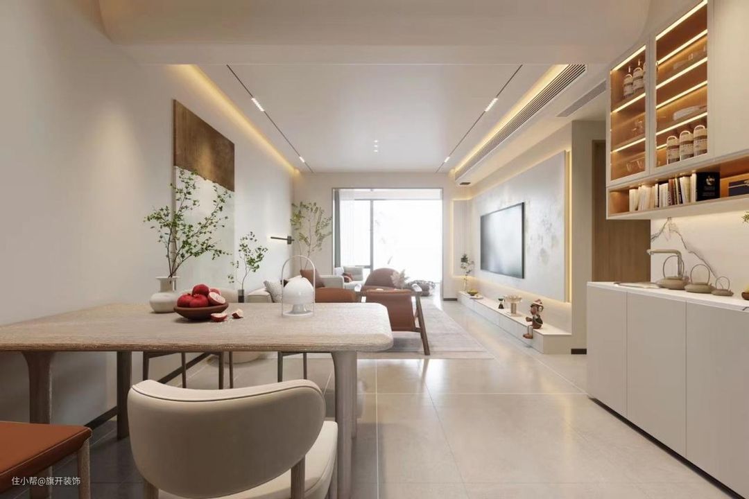 无主灯的设计,利用多种光线打造出层次感,光源还是无死角的,让整个家里呈现出满满的高级感,同时也延长了视觉感,让天花板显得更加简洁干净。