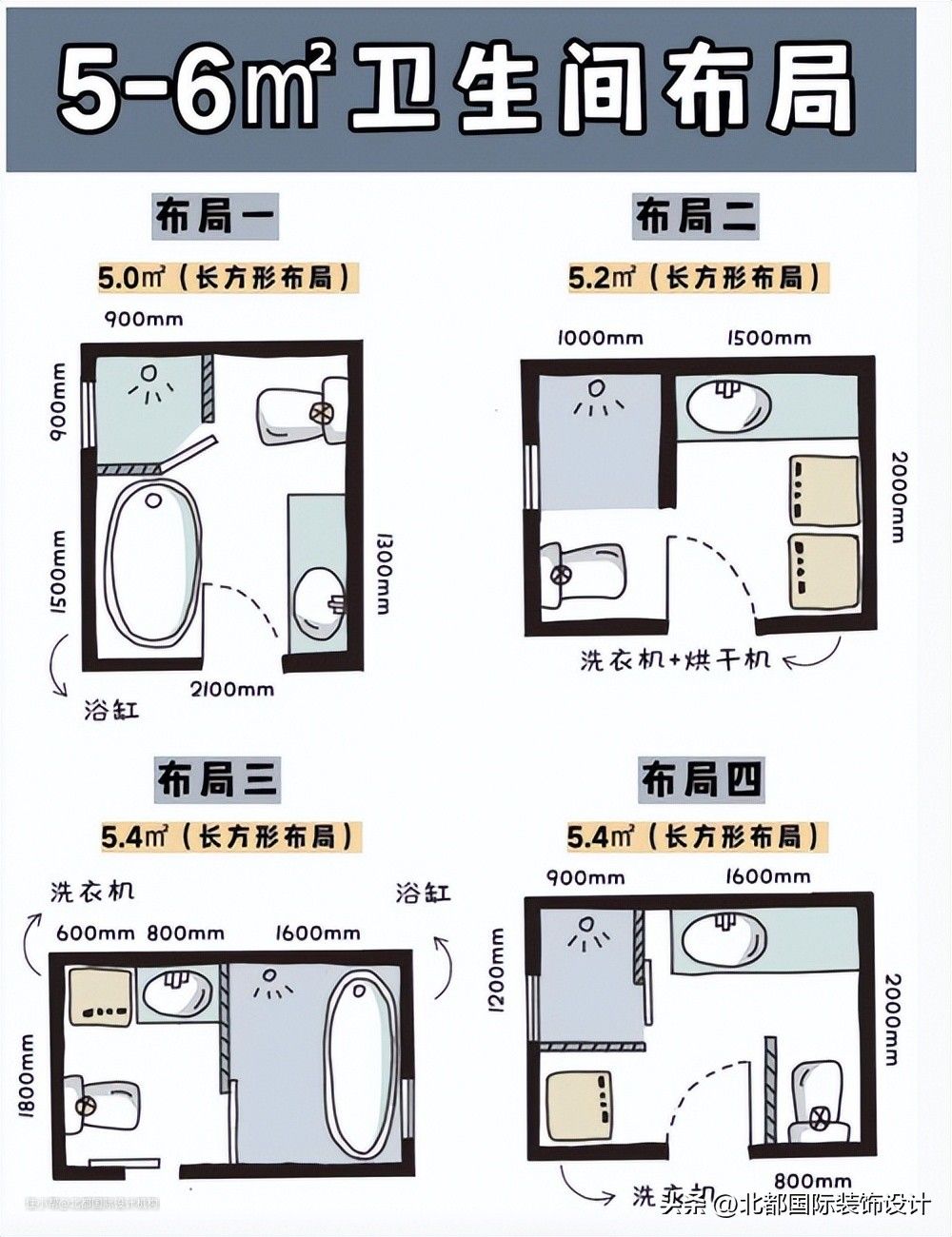 以上为常见的卫生间空间面积,像在一线城市,也有很多极小面积的布局,比如2平米的卫生间。在改造的过程中就更考验设计师的功力了。顺便给大家分享几组设计还不错的卫生间装修图片参考: