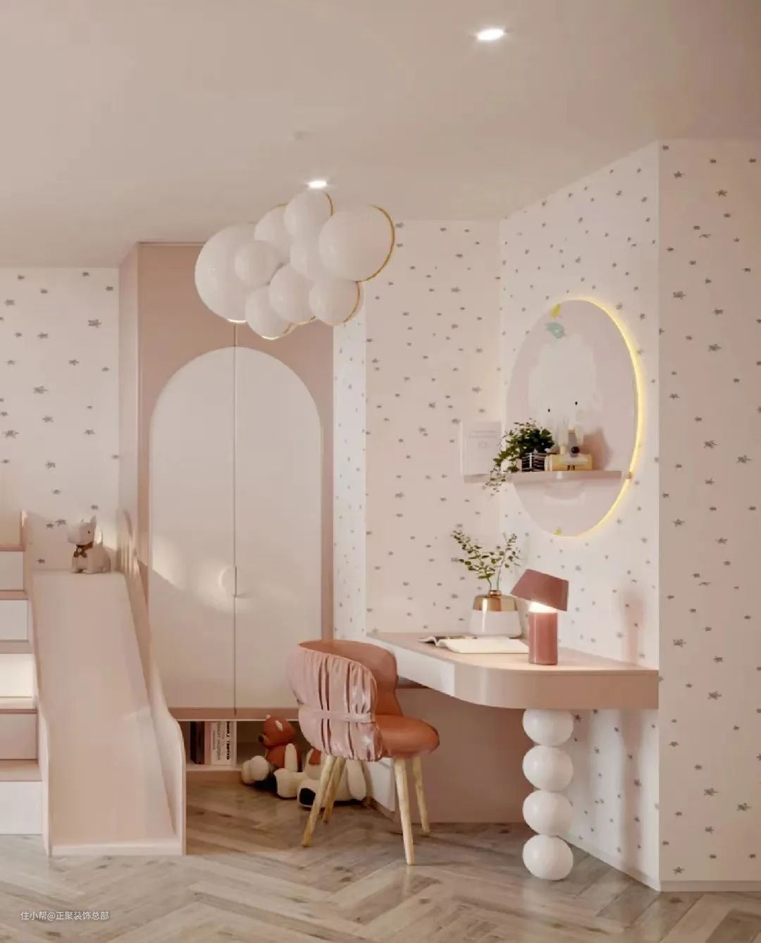 儿童房是守护孩子童年的小世界,也是想象力迸发的小小宇宙,感受着来自这个世界的新奇万物,是爱和美好堆砌的城堡
