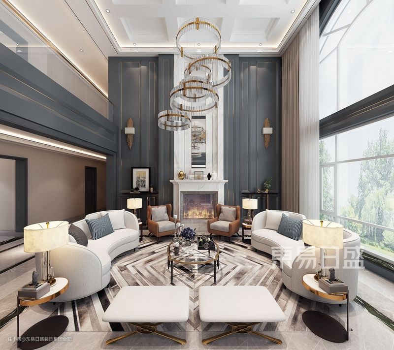 (丽湖花园980平米客厅现代轻奢别墅装修效果图)
