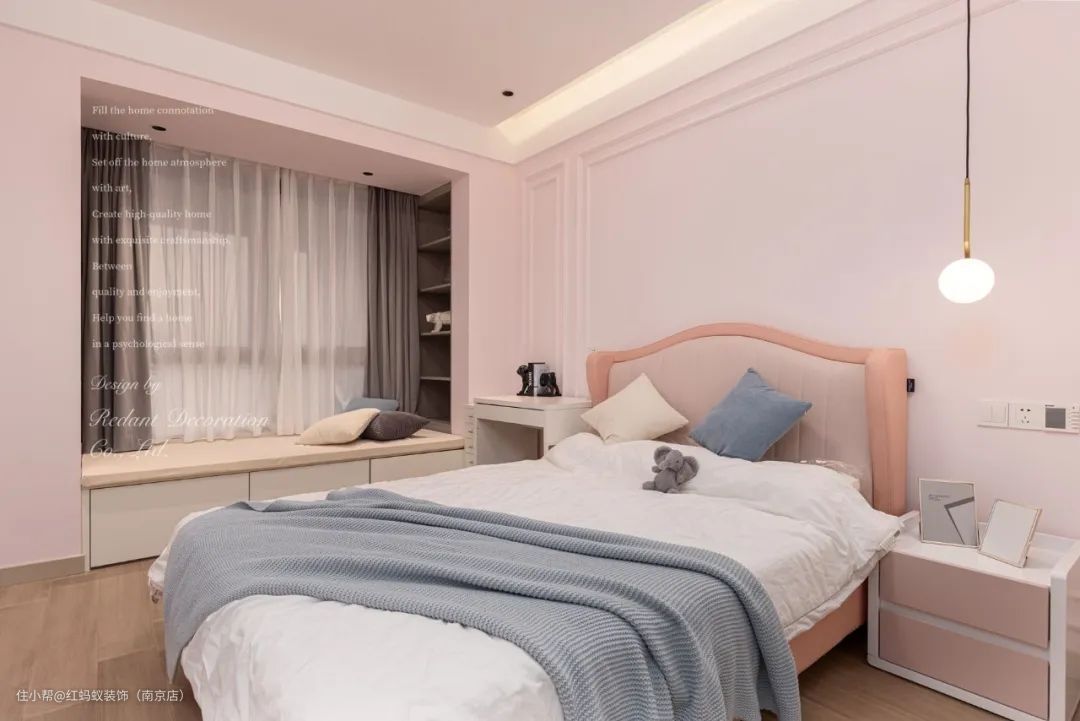 不同年龄段的审美总有很大的差异化,女儿房的粉嫩色系是父母和孩子都乐见的,表达的是对孩子浓浓的爱怜之情。
