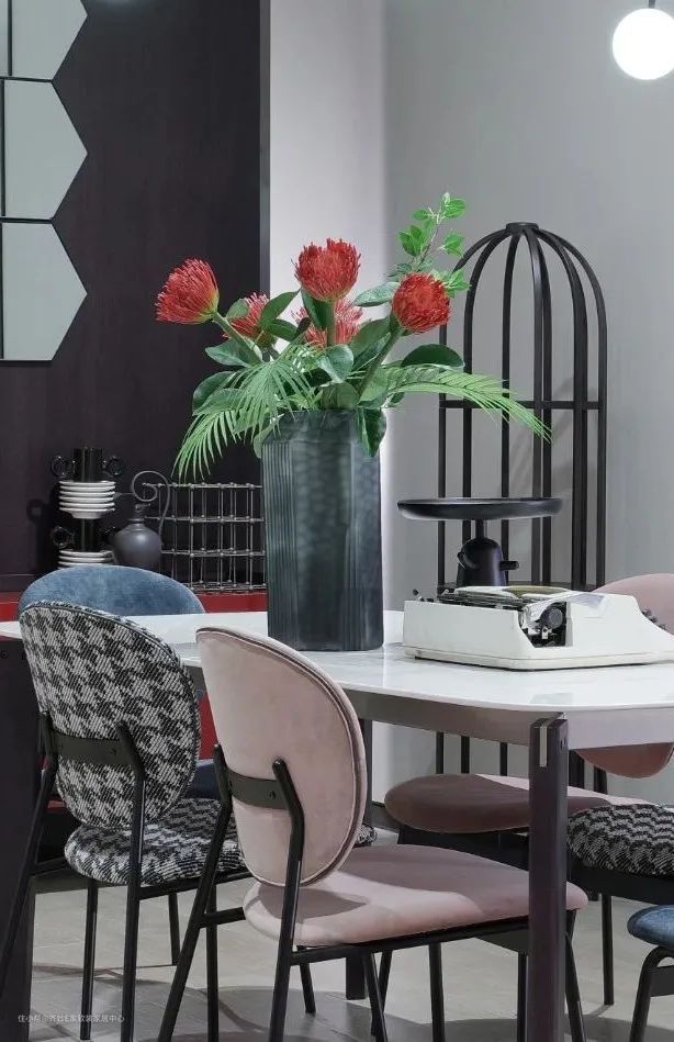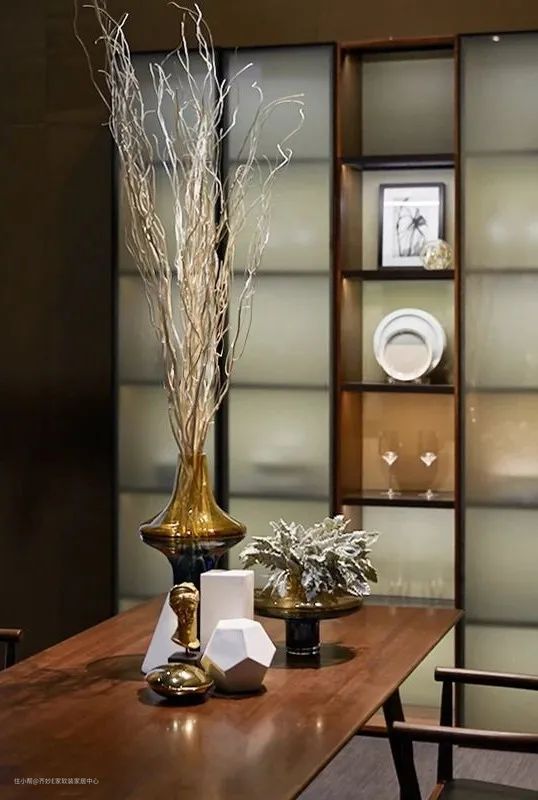 摆设物的种类繁多,从玄关的雕塑工艺品,到餐桌上的鲜花,再到床头柜的摆件,都是家居艺术的一种。器物景致、杯盘碗盏、四时花开,无一不是在经营情致。