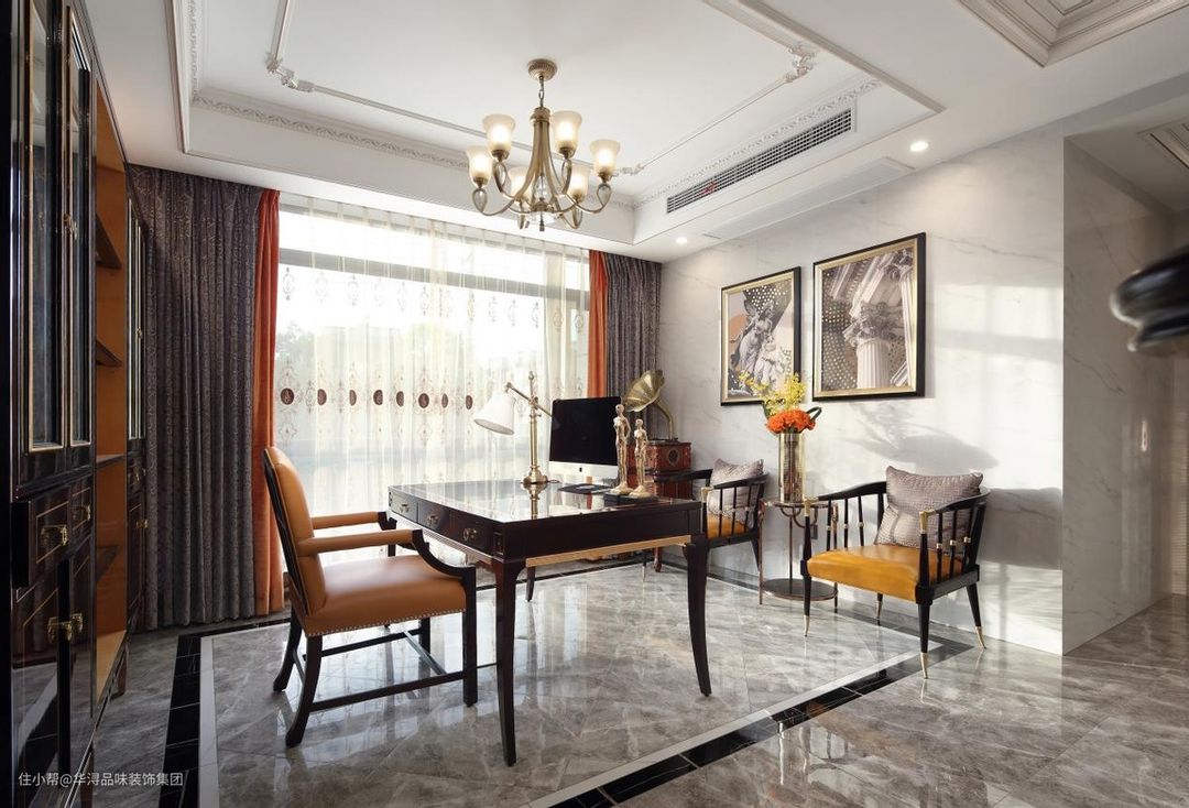 开放式书房书最满意的功能区,这里使用了落地窗,保证了空间的明亮。书房选用了一套深色的家具,奠定了书房沉稳、端庄的气质。