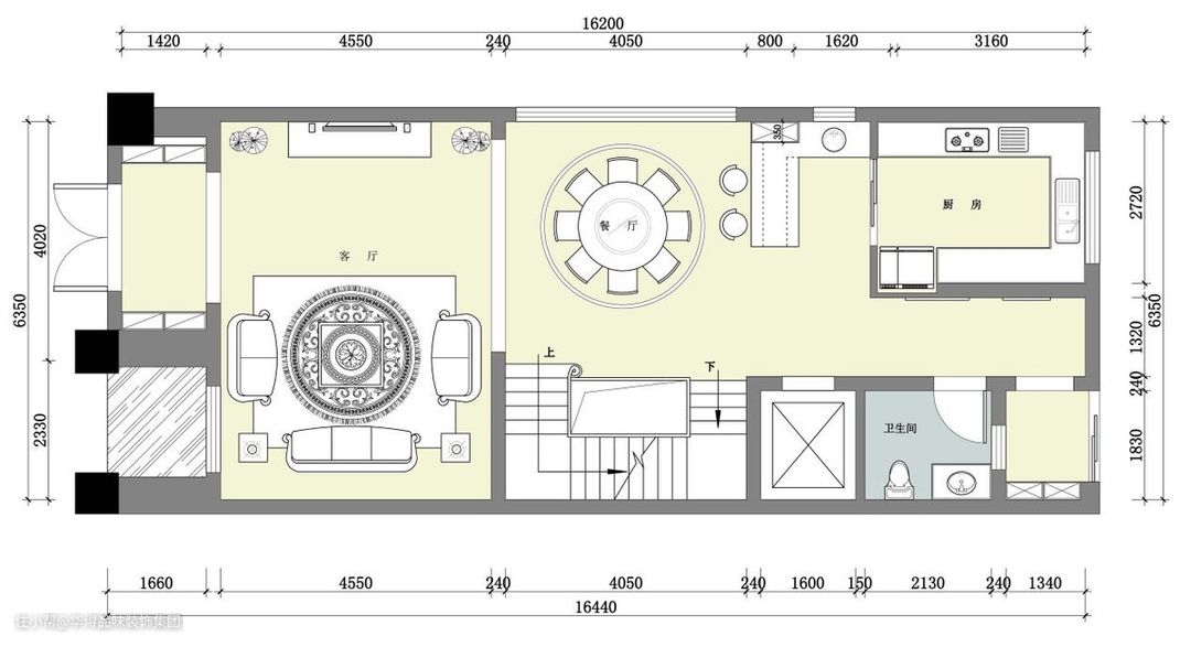 - 原结构中,厨房为开放式厨房,但开放式厨房难以阻挡油烟的扩散。