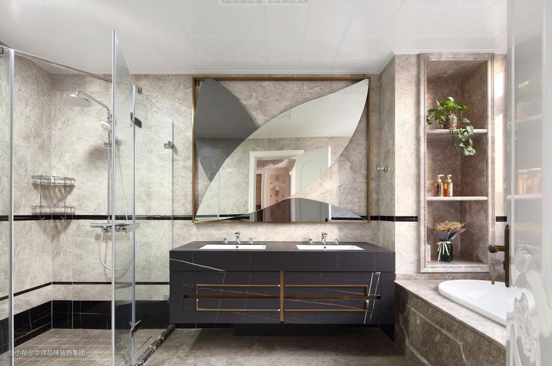 在本案中,设计师将卫生间中的镜子做成了花瓣的形状,不拘泥常规的样式能给人眼前一亮的感觉,也让卫生间显得更加精致。