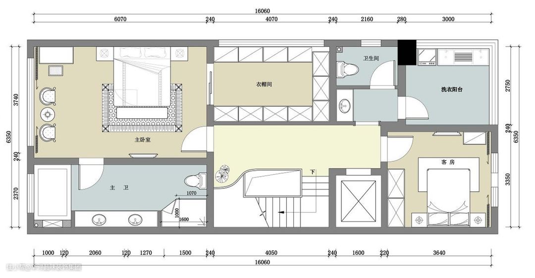 另外,在三楼还布置了客房,供业主招待访客使用。