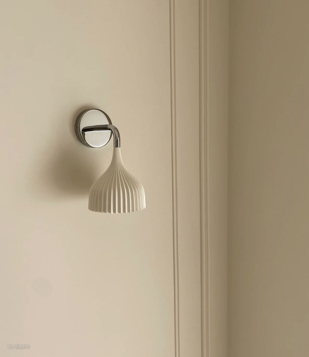 将台灯上墙,换成壁灯后,使用感是一样,但不用后续考虑台灯的放置问题,那么释放卧室空间的目的也就达到了。