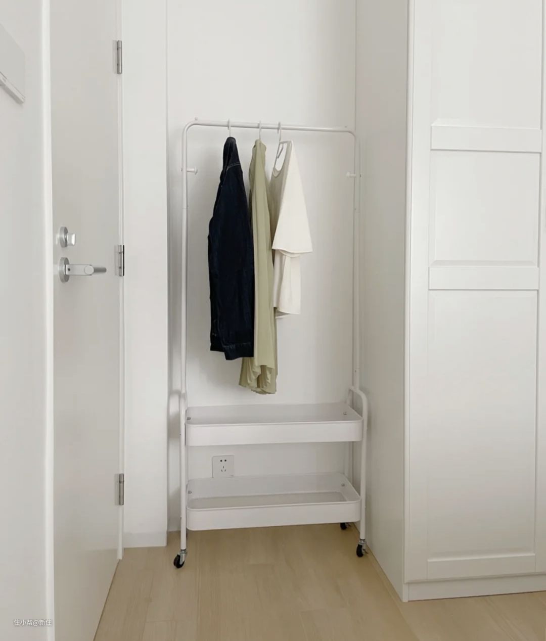 衣帽架,横在门后,不会影响门的正常开合角度,也给穿了一天又不需要洗的衣物,找到一个容身之处。