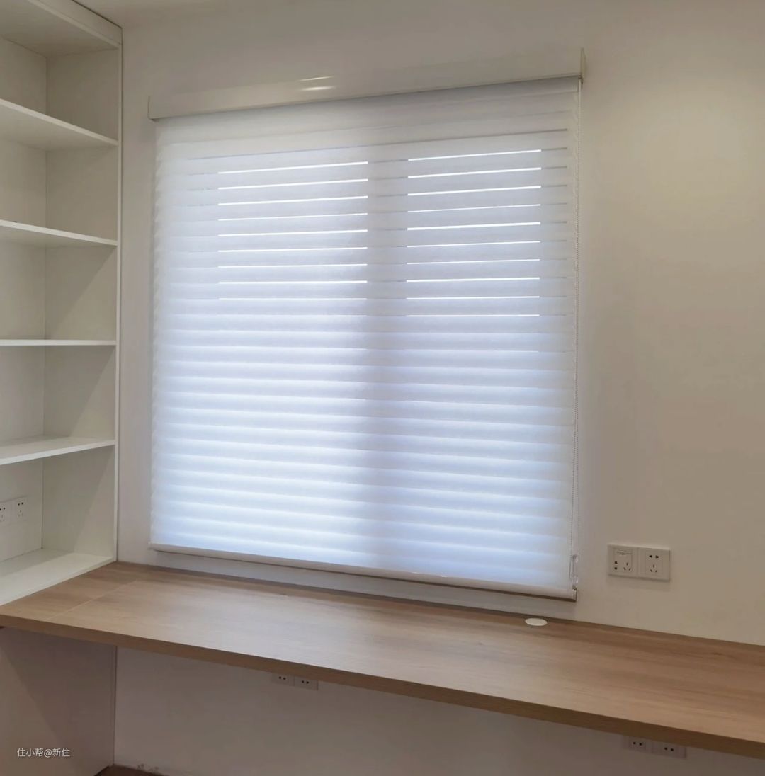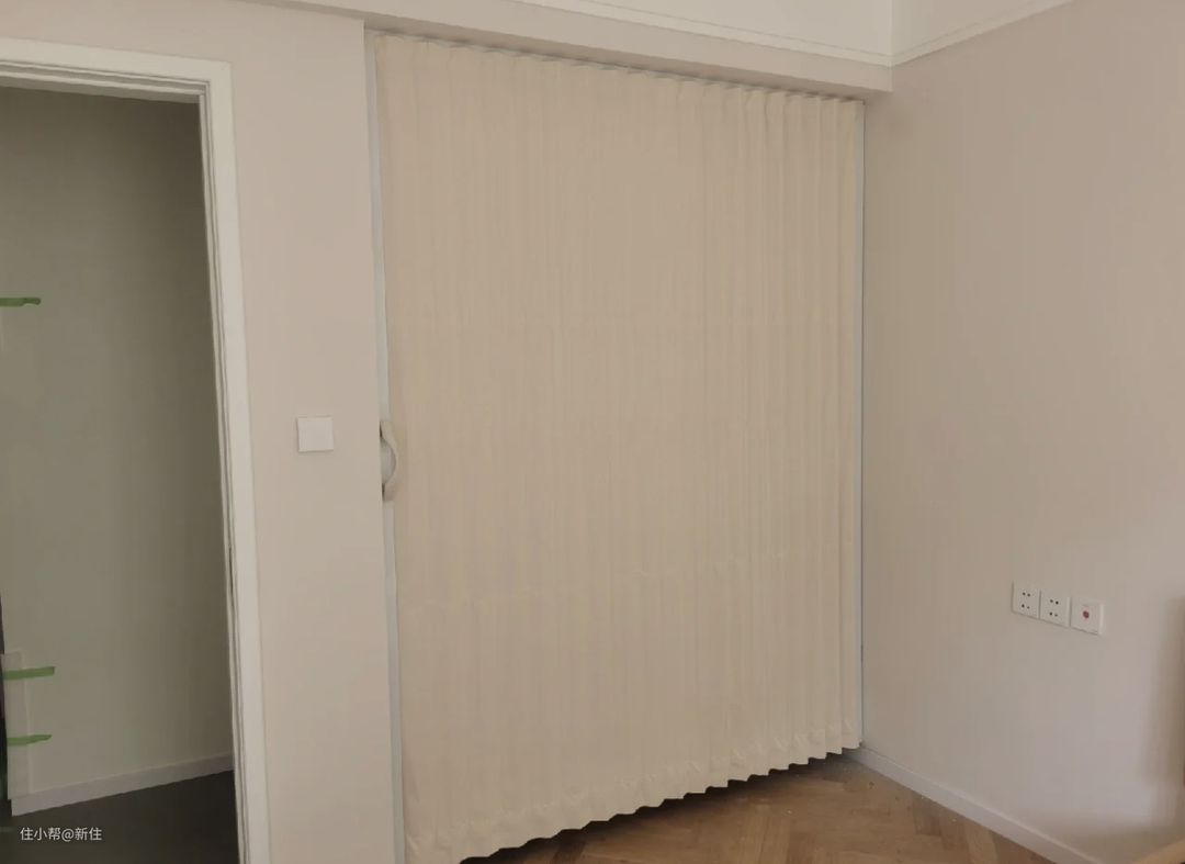 考虑到这一点,可以摒弃占空间的布艺窗帘,改为香格里拉窗帘,它只需要刚好遮住窗户的大小,厚度只有几厘米,完全解决了窗帘空间问题。