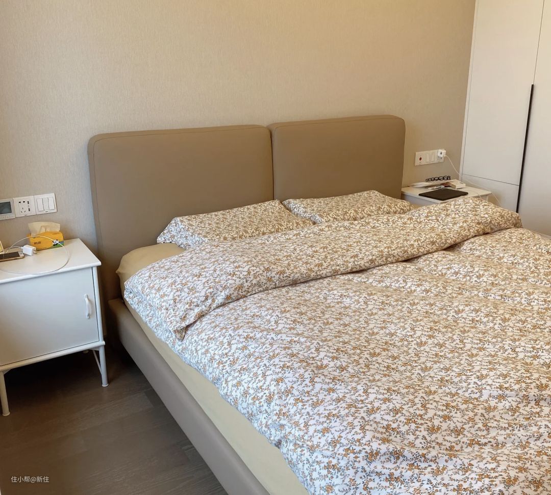 二是,厚靠背床,部分美观度可能会稍高,但咱空间小,还是要围绕省空间、实用性方面,所以,薄靠背床更适合。